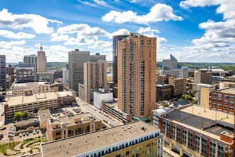 The Pointe is a 34-story high-rise condominium located in the vibrant Downtown neighborhood of Saint Paul. Completed in 1987, this building features a striking brick facade with balconies on one side and a distinctive curved glass entrance at the base. With 290 units, The Pointe offers a range of living options for those seeking a blend of urban convenience and modern amenities.