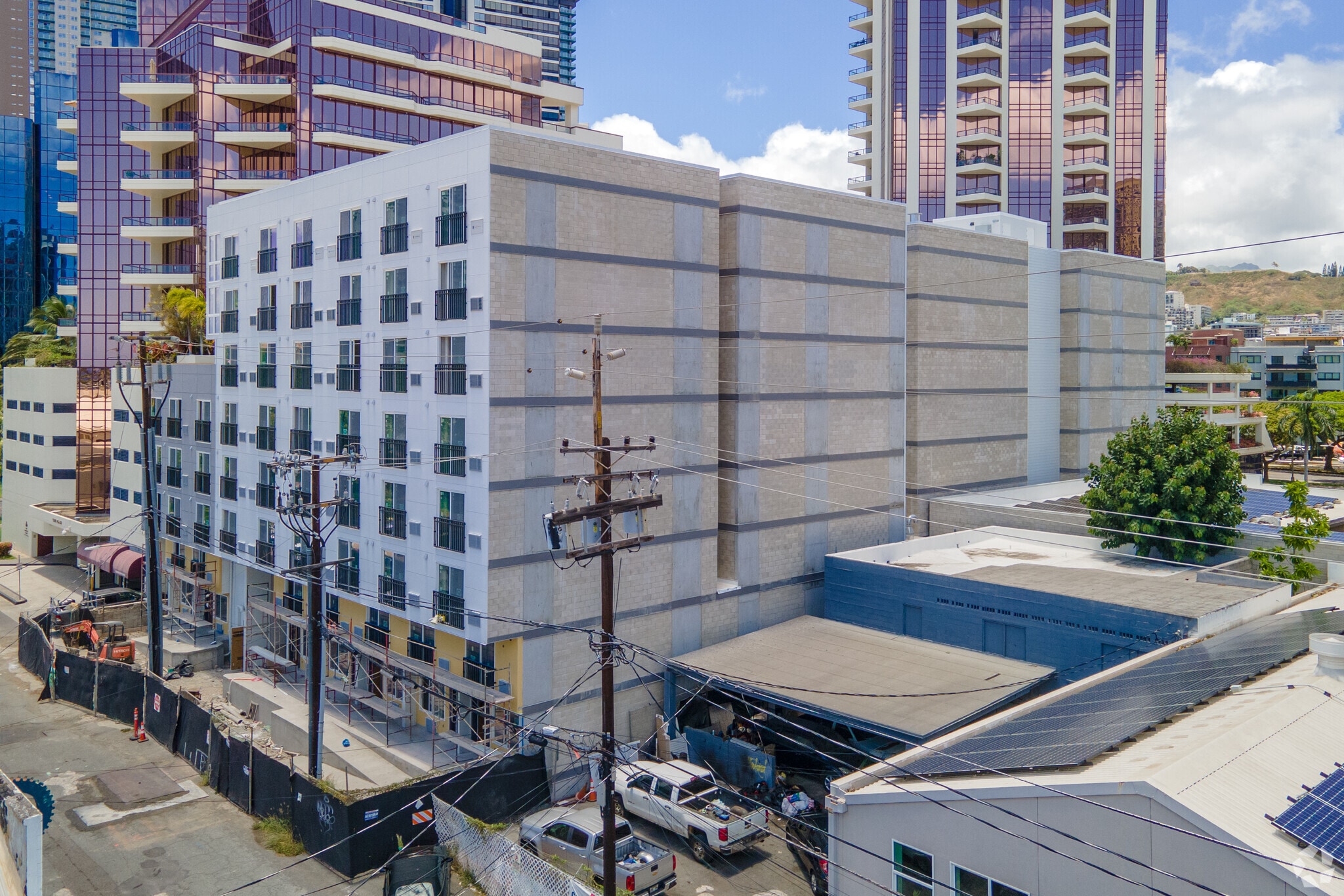 The Block Apartments, completed in 2019, stands as a contemporary addition to Downtown Honolulu's skyline. This 7-story structure houses 153 condominium units, offering residents a prime location in the vibrant Kaka'ako neighborhood. The building's design reflects the area's ongoing transformation, blending seamlessly with the evolving urban landscape. Its recent construction ensures modern amenities and finishes, catering to those seeking a fresh living experience in one of Honolulu's most dynamic districts.