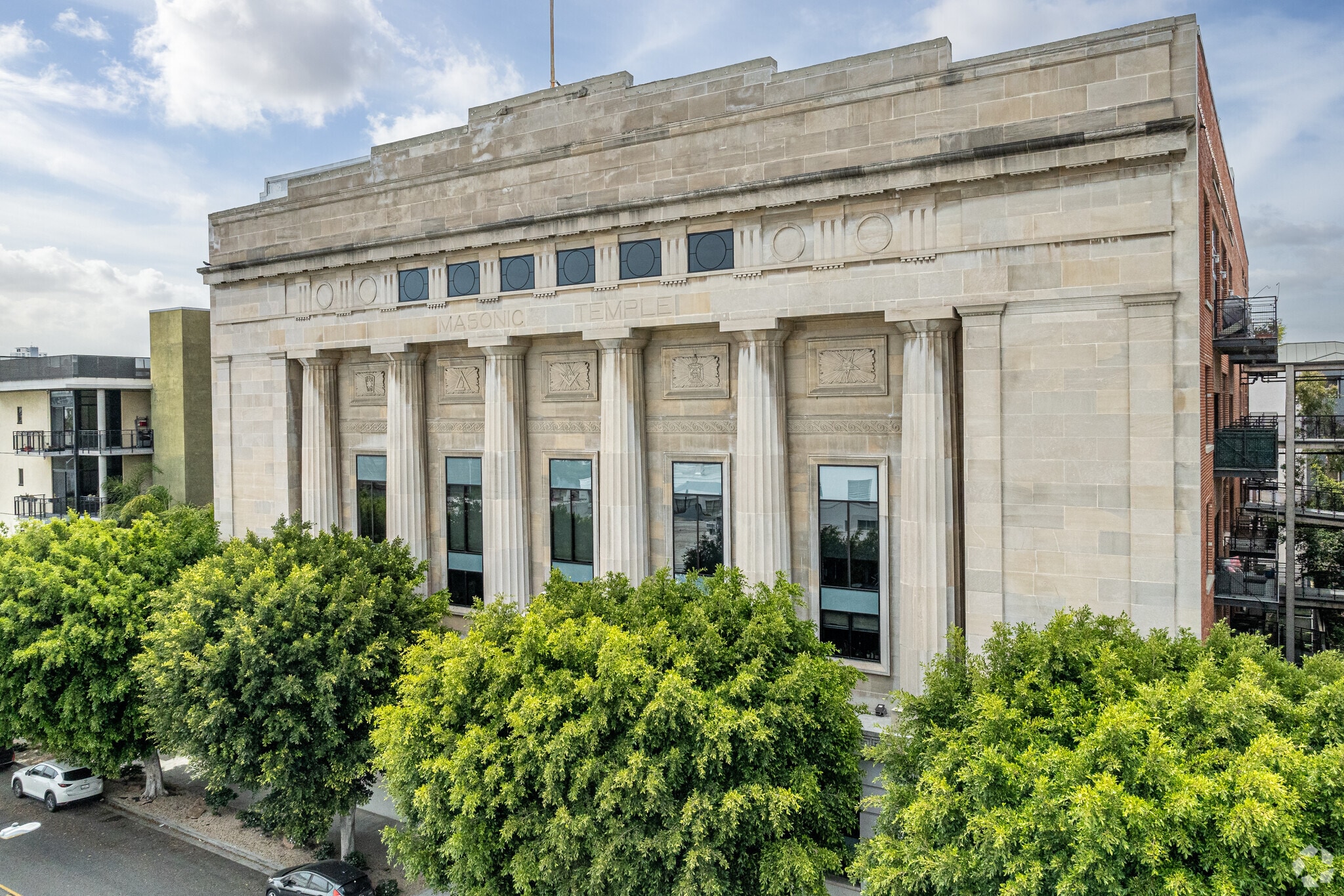Temple Lofts, located at 835 Locust Avenue in Long Beach, California, is a striking example of adaptive reuse architecture. Originally constructed in 1927 as the Long Beach Masonic Temple, this 6-story Neoclassical building was converted into 83 residential loft units in 2005. The conversion preserved many of the building's historic elements, including its grand entrance hall with ornate light fixtures, terrazzo floors, and painted ceilings. Today, Temple Lofts stands as a unique blend of historic charm and contemporary urban living, offering residents a chance to live in a piece of Long Beach history while enjoying modern amenities and a prime downtown location.