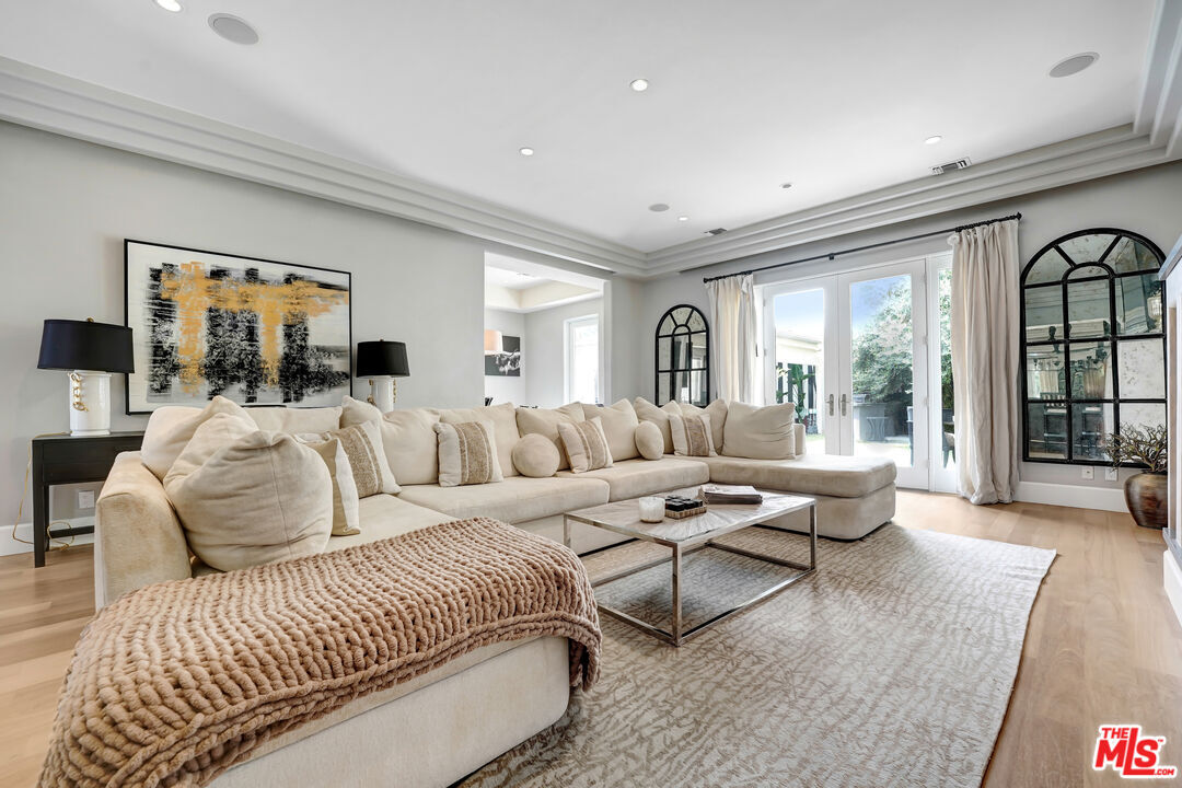 ¡Obra maestra contemporánea! Esta casa contemporánea de ensueño cuenta con un plano de planta ideal para el entretenimiento, una amplia sala de estar, un bar con encimeras de granito y una chimenea de pared con acabado de yeso veneciano. El comedor formal conduce, a través de la estación de mayordomo, a una cocina de chef profesional, una gran isla central con fregadero, electrodomésticos de acero inoxidable, gabinetes a medida, vinoteca con capacidad para 32 botellas, despensa y área de desayuno. La primera planta también cuenta con una amplia suite y un lujoso tocador de yeso veneciano. Suba por la intrincada escalera moderna con barandilla de diseño hasta la segunda planta, donde encontrará tres suites, incluyendo dos lujosas suites principales con duchas de vapor en mármol blanco de Carrara, bañeras de hidromasaje con chorros de masaje, inodoros con bidé de última generación, gabinetes de madera a medida, lavabos de diseño, vestidores de lujo y chimeneas. Amplia área de entretenimiento al aire libre, con sala de estar estilo cabaña y un exuberante jardín trasero. ¡Disfrute del estilo de vida de Melrose, West Hollywood, Beverly Hills y Sunset Strip! MLS# 26647965