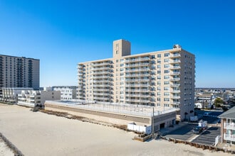 Margate Towers, an 11-story condominium building, stands prominently along the oceanfront in Margate, NJ. Completed in 1963, this building houses 199 units and offers a straightforward, modern design with balconies on each floor and a flat roof. Its prime location provides residents with unobstructed ocean views and easy access to the beach, making it a desirable place to call home.