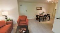 This 770 square foot apartment in Alexandria, VA offers a well-designed living space on a single floor. The property features one bedroom, measuring 170 square feet, and one bathroom. The living area is notably spacious, with wall-to-wall carpeting and large windows that allow natural light to flood the room. The kitchen is equipped with modern stainless steel appliances, including a gas range, microwave, and dishwasher. Wooden cabinetry and light-colored countertops provide ample storage and workspace. The bathroom showcases clean, white tiling and a full-size bathtub with shower. Throughout the apartment, there are three closets, offering generous storage options. The hallway connects the various rooms efficiently. The overall design maintains a neutral color palette with white walls, creating a bright and airy atmosphere. The apartment's layout maximizes the use of space, with clearly defined areas for living, dining, and sleeping. The kitchen's hardwood flooring adds a touch of warmth and contrast to the carpeted areas. With its combination of functionality and modern amenities, this apartment presents an ideal living solution for individuals or couples seeking a comfortable home in Alexandria.