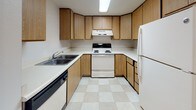 Estufa de cocina y gabinetes de los Clover Creek Apartments
