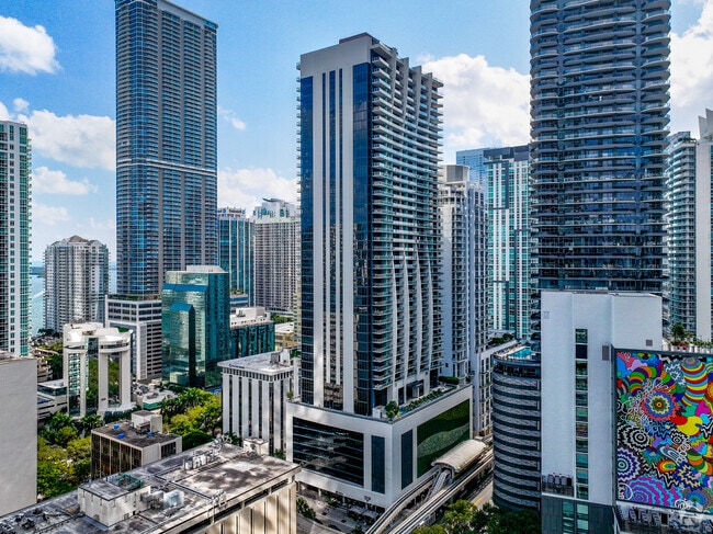 1010 Brickell Avenue stands as a prominent fixture in Miami's financial district. Completed in 2017, this 50-story high-rise, designed by The Sieger Suarez Architectural Partnership, offers 389 condominium units. The building's sleek glass facade and wave-like balcony pattern contribute to Brickell's evolving skyline. Situated in one of Miami's trendiest and fastest-growing neighborhoods, 1010 Brickell caters to a dynamic, young demographic, including families with small children who appreciate the area's walkable streets and worldly ambiance.