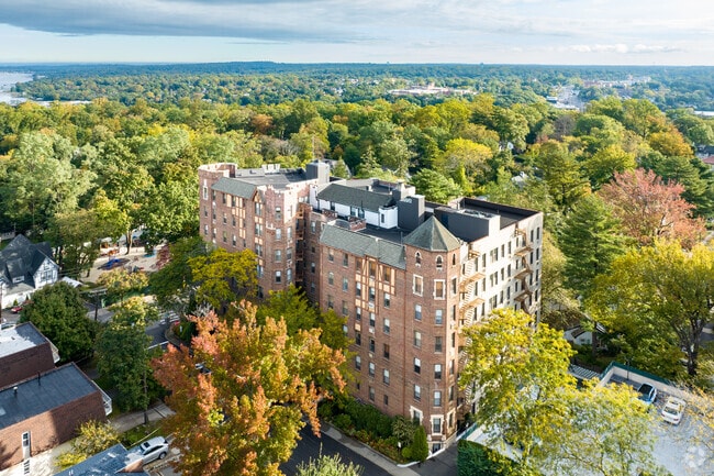2 Spruce Street, also known as Spruce Towers, stands as a testament to Great Neck's rich architectural heritage. Completed in 1927, this six-story brick structure houses 62 condominium units, blending pre-war character with contemporary living. Located in the heart of Thomaston, the building offers residents a tranquil retreat within easy reach of Great Neck's vibrant community life. With its symmetrical facade and central protruding bay, Spruce Towers maintains an air of timeless elegance while providing the conveniences expected in today's homes.