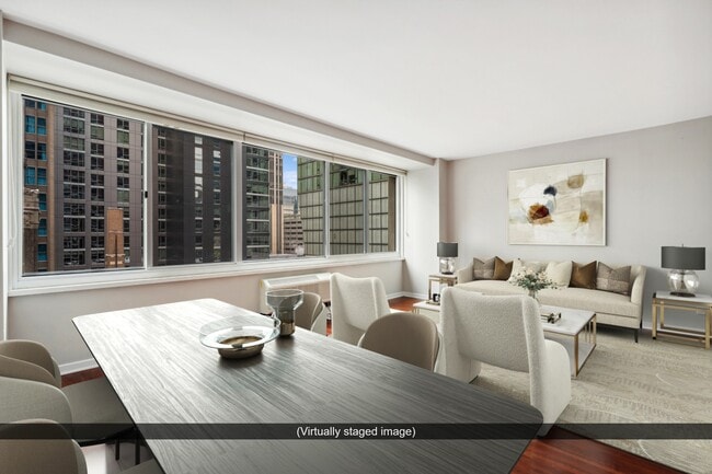 535 N Michigan Avenue, known as The Private Residences, stands tall in the heart of Chicago's Magnificent Mile. This 33-story condominium, completed in 1961, houses 459 units ranging from cozy studios to spacious three-bedroom homes. The building's prime location offers residents unparalleled access to the vibrant Streeterville neighborhood, with its eclectic mix of shopping, dining, and cultural attractions. From its vantage point on Michigan Avenue, the structure provides sweeping views of the cityscape, including glimpses of Lake Michigan and the Chicago River.