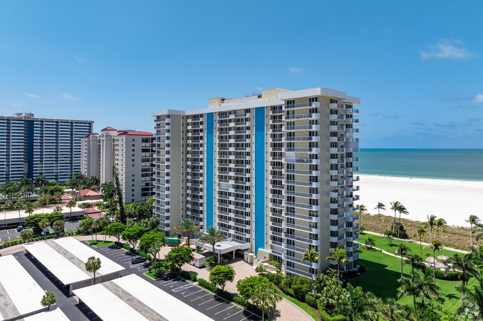 Admiralty House, an 18-story high-rise condominium, stands as a prominent feature on Marco Island's pristine coastline. Completed in 1973, this building comprises 200 units, offering residents unparalleled views of the Gulf of Mexico and the island's sugar-sand beaches. Its straightforward, modern design with a symmetrical facade and rows of balconies ensures that each unit enjoys the natural beauty of its surroundings. Located in the heart of Marco Island, Admiralty House provides a serene yet vibrant living experience, blending luxury with the tranquility of coastal living.