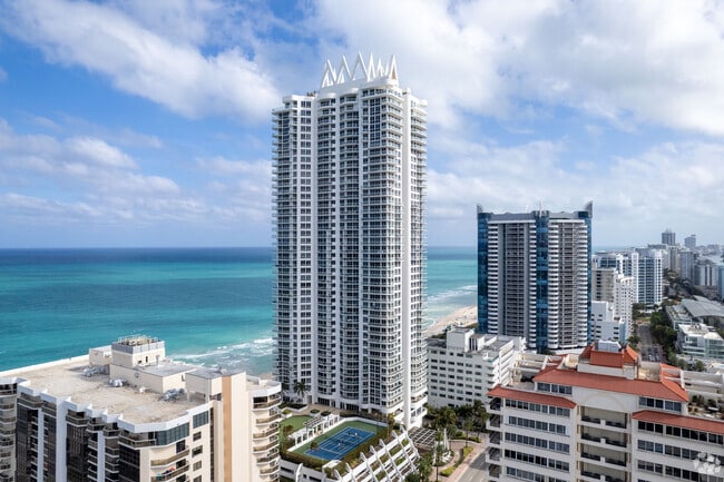 Rising 48 stories above the Atlantic, Akoya Miami Beach stands as one of the tallest residential towers on this coveted stretch of coastline. Completed in 2004 by BC Architects AIA, Inc., this striking condominium offers 386 units with panoramic views of the ocean, Biscayne Bay, and the Miami skyline. Situated in the tranquil North Shore neighborhood, Akoya provides a serene coastal retreat while remaining close to the vibrant energy of South Beach and Bal Harbour. The building's sleek design features floor-to-ceiling windows and expansive balconies, maximizing the breathtaking vistas that define Miami Beach living.