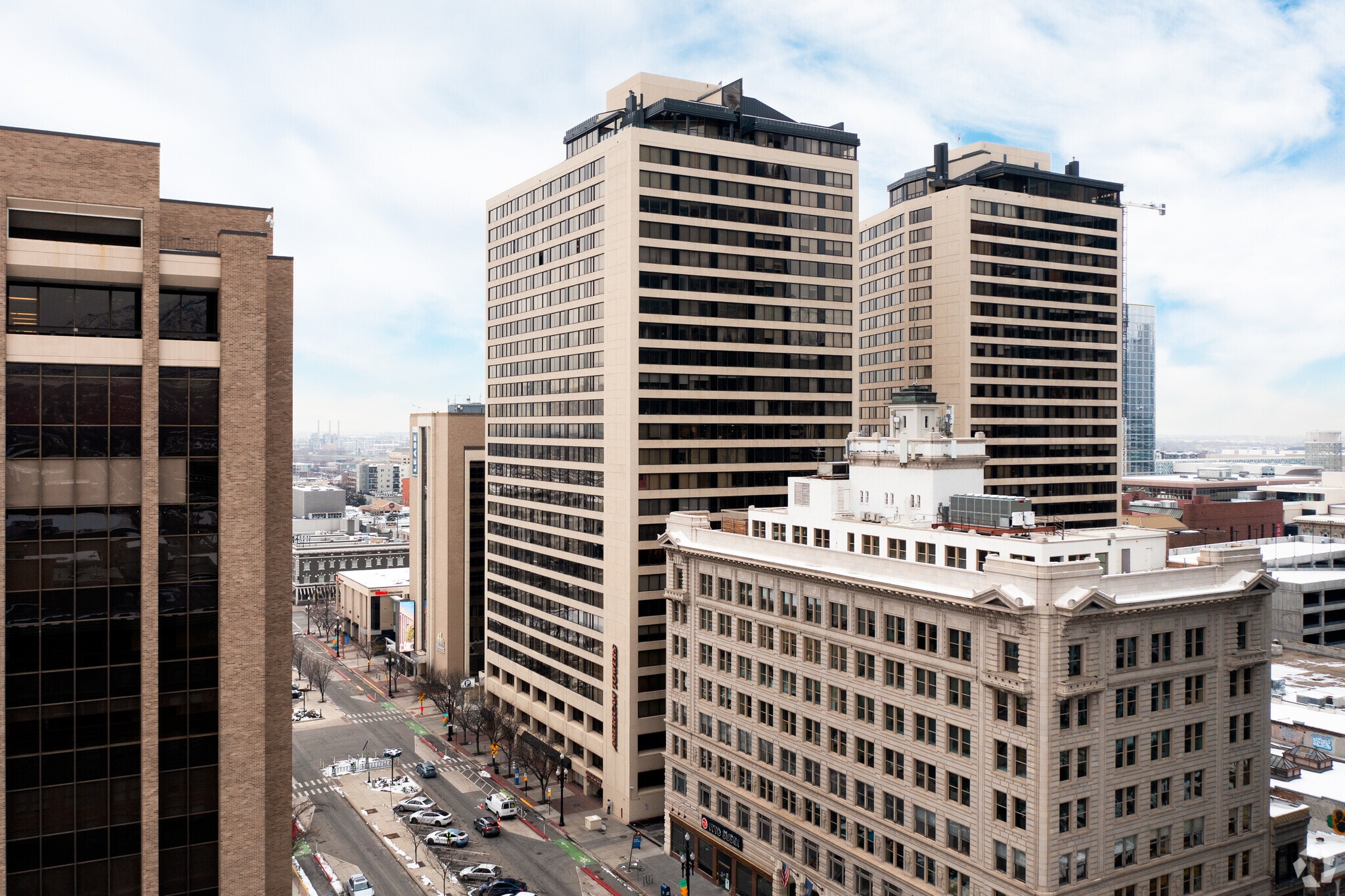 American Towers stands as a prominent fixture in Salt Lake City's skyline, offering a blend of urban convenience and comfortable living. Completed in 1990, this 26-story high-rise condominium complex houses 357 units, providing residents with panoramic views of the city and surrounding mountains. Located in the vibrant Central City neighborhood, American Towers puts residents at the epicenter of Salt Lake's cultural, dining, and entertainment scenes. The building's modern design features large windows that frame the cityscape, while its height allows for unobstructed vistas of the Wasatch Range and Oquirrh Mountains.
