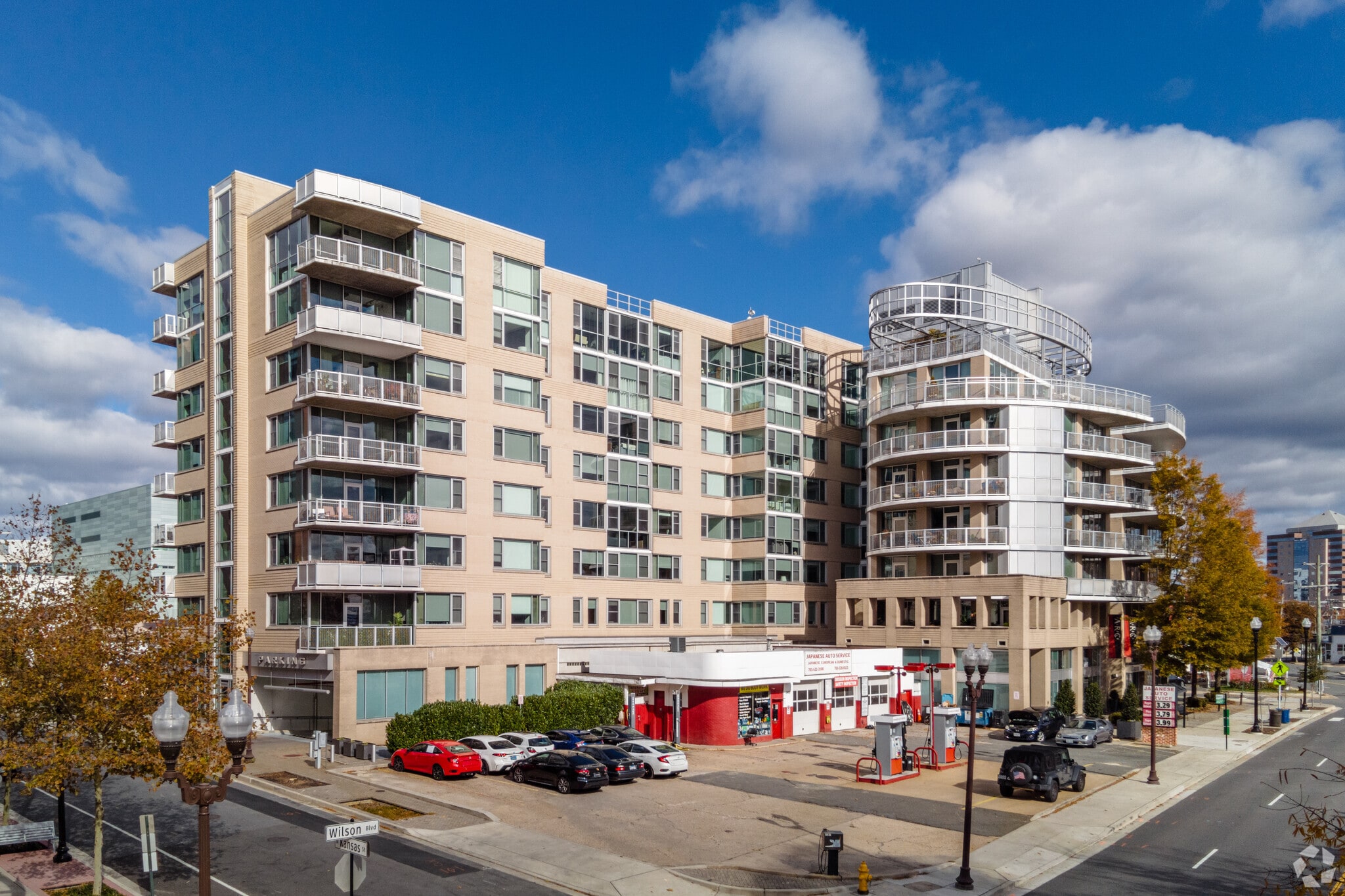 Arc 3409, designed by WHA Associates, stands as an eight-story condominium building completed in 2008. Located in the vibrant Ballston neighborhood of Arlington, VA, this building features 85 units. The structure's curved facade, rounded balconies, and large windows contribute to its contemporary aesthetic, making it a notable presence in the area.