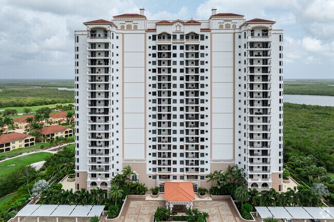 Aversana at Hammock Bay stands as the crown jewel among the luxury high-rises in this prestigious gated community. Completed in 2004, this 20-story condominium tower houses 113 opulent residences designed by Robert S Wennett And Mario Cader Frech Foundation. The building's elegant facade features a symmetrical design with a central section flanked by slightly recessed wings, creating a striking silhouette against the Florida sky. Situated just minutes from Marco Island and a short drive from Naples, Aversana offers residents a perfect blend of seclusion and accessibility to Southwest Florida's finest attractions.