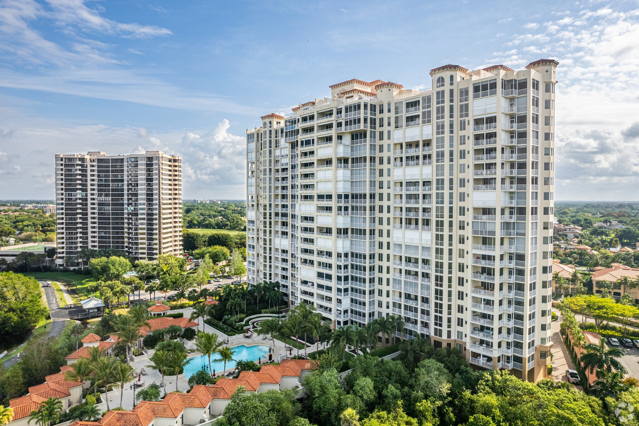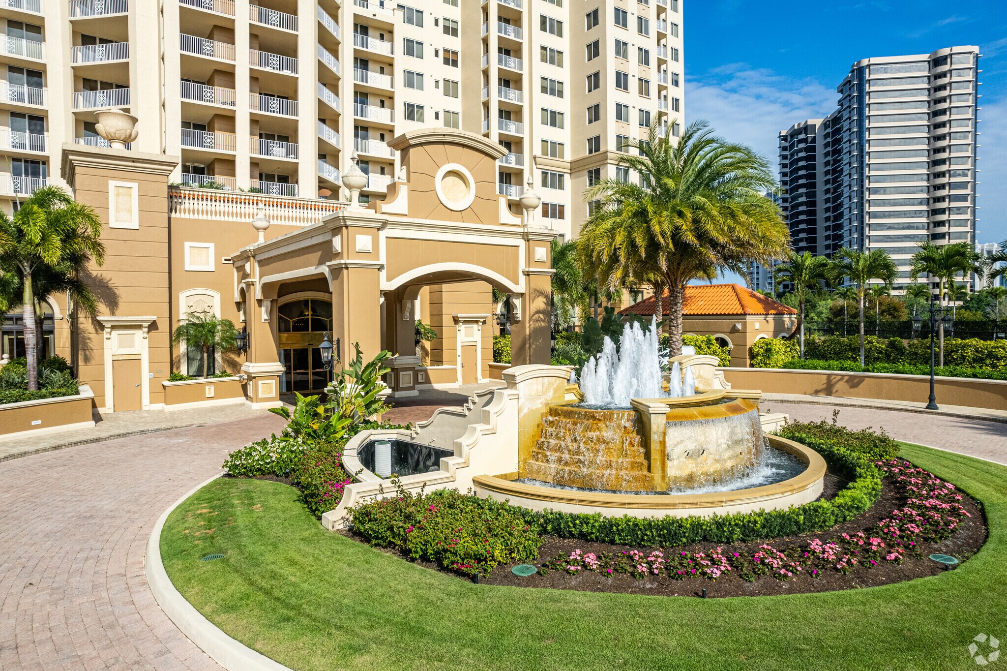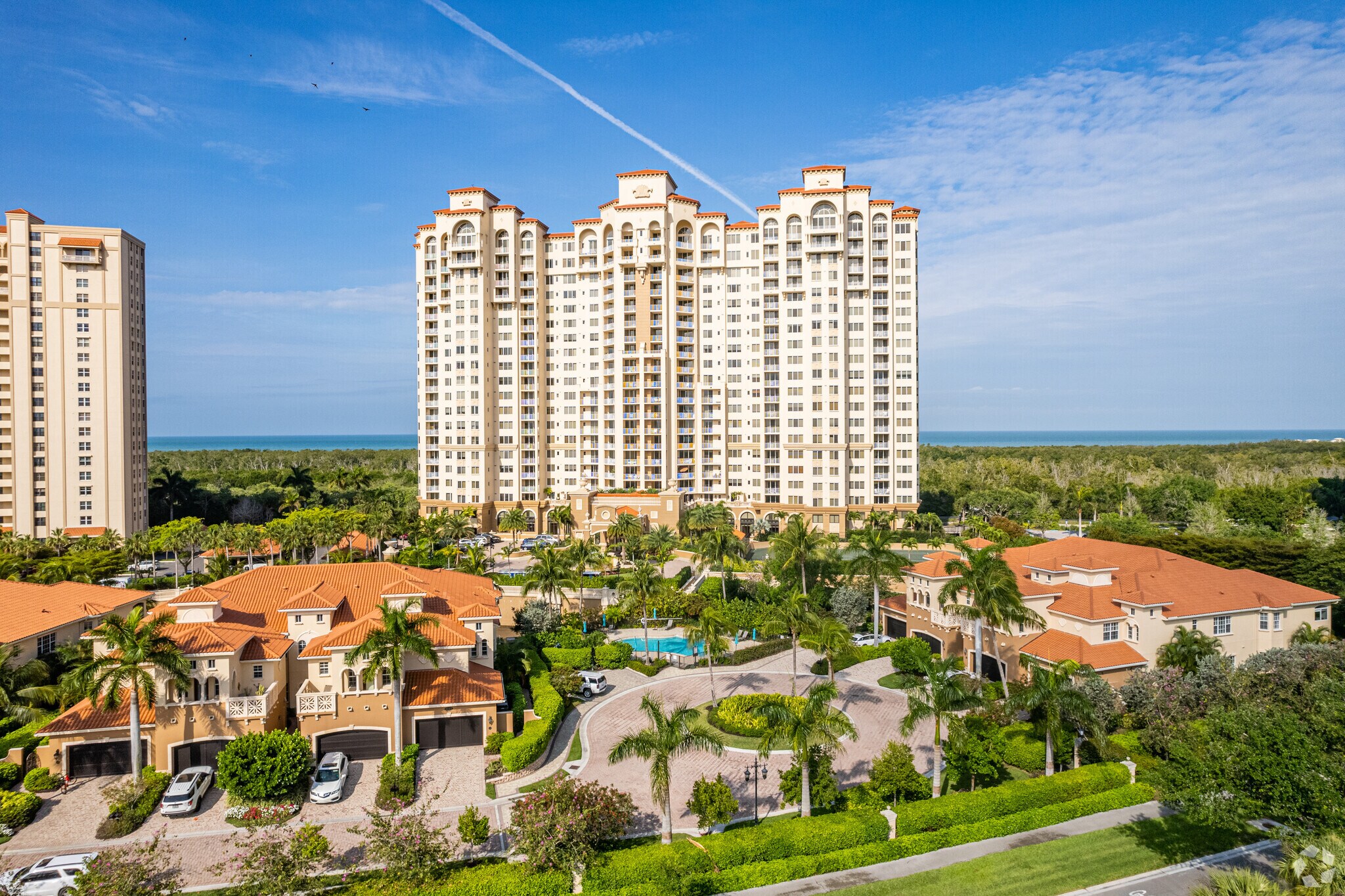 Cap Ferrat, a 22-story condominium building completed in 2002, stands as a hallmark of Mediterranean Revival architecture in the prestigious Pelican Bay neighborhood. With its symmetrical facade, arched windows, terracotta roof tiles, and ornamental detailing, the building exudes timeless elegance. Home to 111 luxurious units, Cap Ferrat offers residents a blend of sophistication and comfort, all within the exclusive enclave of Crown Colony.