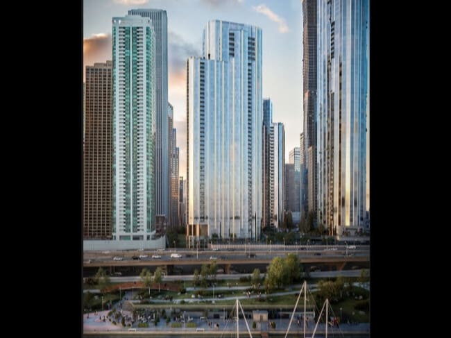 Cirrus Condominiums, designed by bKL Architecture, LLC, is a striking 47-story high-rise completed in 2022. Located at the intersection of Lake Michigan and the Chicago River in the New East Side neighborhood, this building offers 350 luxurious units. The sleek glass facade and rectilinear form create a contemporary aesthetic that complements the vibrant urban environment. With its prime location and modern design, Cirrus Condominiums stands as a prominent feature in the Lakeshore East community.