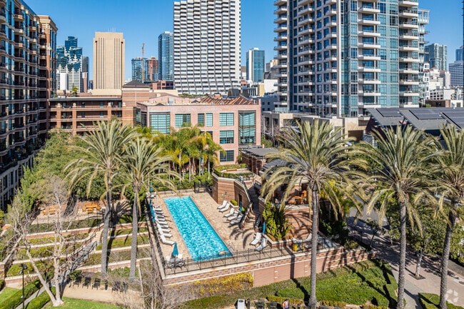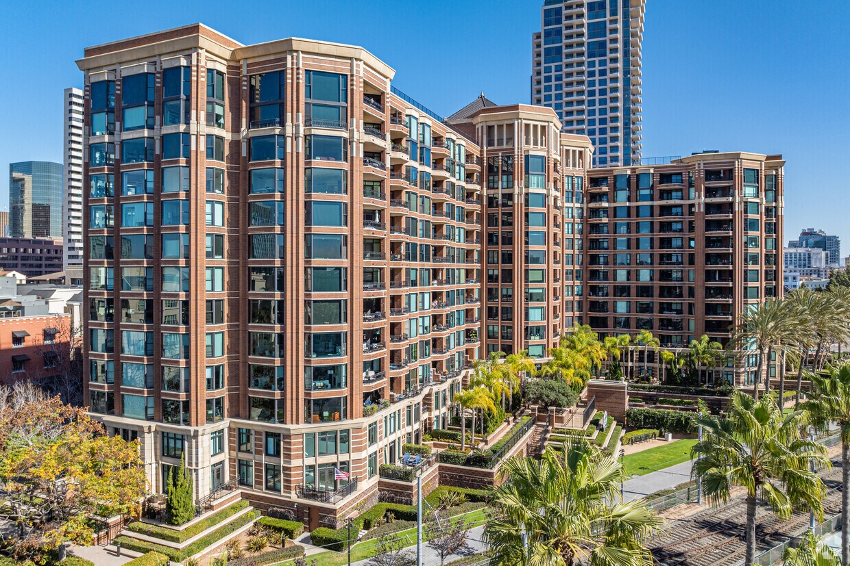 CityFront Terrace, designed by Solomon Cordwell Buenz & Associates Inc., stands as a prominent fixture in San Diego's vibrant Marina District. Completed in 1994, this 13-story condominium complex houses 320 luxury residences, offering a blend of modern comfort and urban sophistication. The building's architecture combines a historic loft building with a contemporary tower, creating a unique aesthetic that pays homage to the area's rich maritime heritage while embracing modern design principles. Situated on 2.3 acres of meticulously landscaped grounds, CityFront Terrace provides residents with a tranquil oasis amidst the bustling downtown scene.