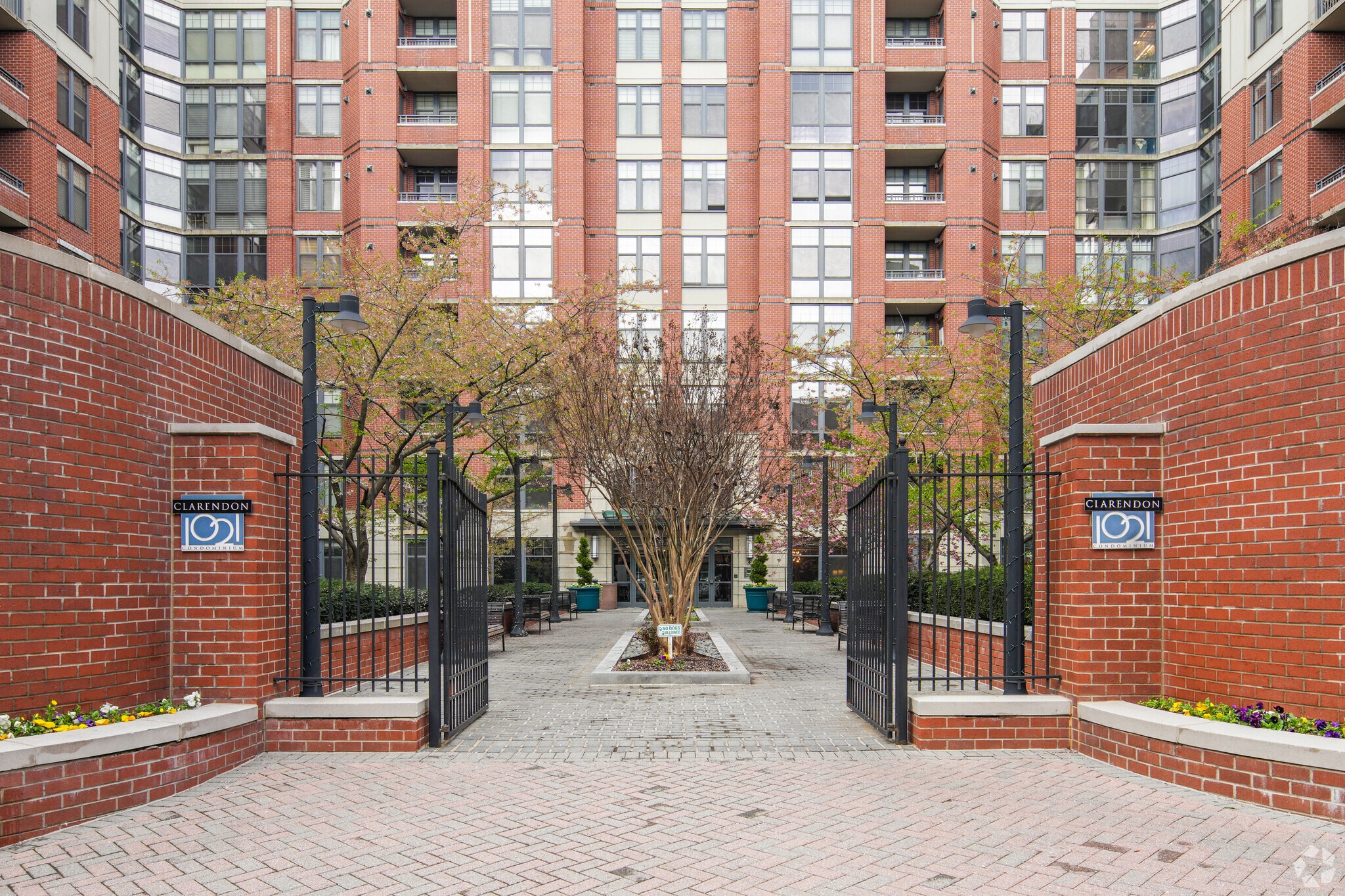 Clarendon 1021, designed by WDG Architecture, stands as a prominent fixture in Arlington's bustling Clarendon/Courthouse area. Completed in 2005, this 10-story condominium building houses 419 units, offering a mix of studio, one-, two-, and three-bedroom layouts. The structure's modern facade, featuring a combination of brick and stone with rounded corner towers and symmetrical bay windows, complements the urban landscape of this sought-after neighborhood. Located just blocks from the Clarendon Metro station, residents enjoy easy access to a wealth of dining, shopping, and entertainment options, embodying the essence of convenient city living.