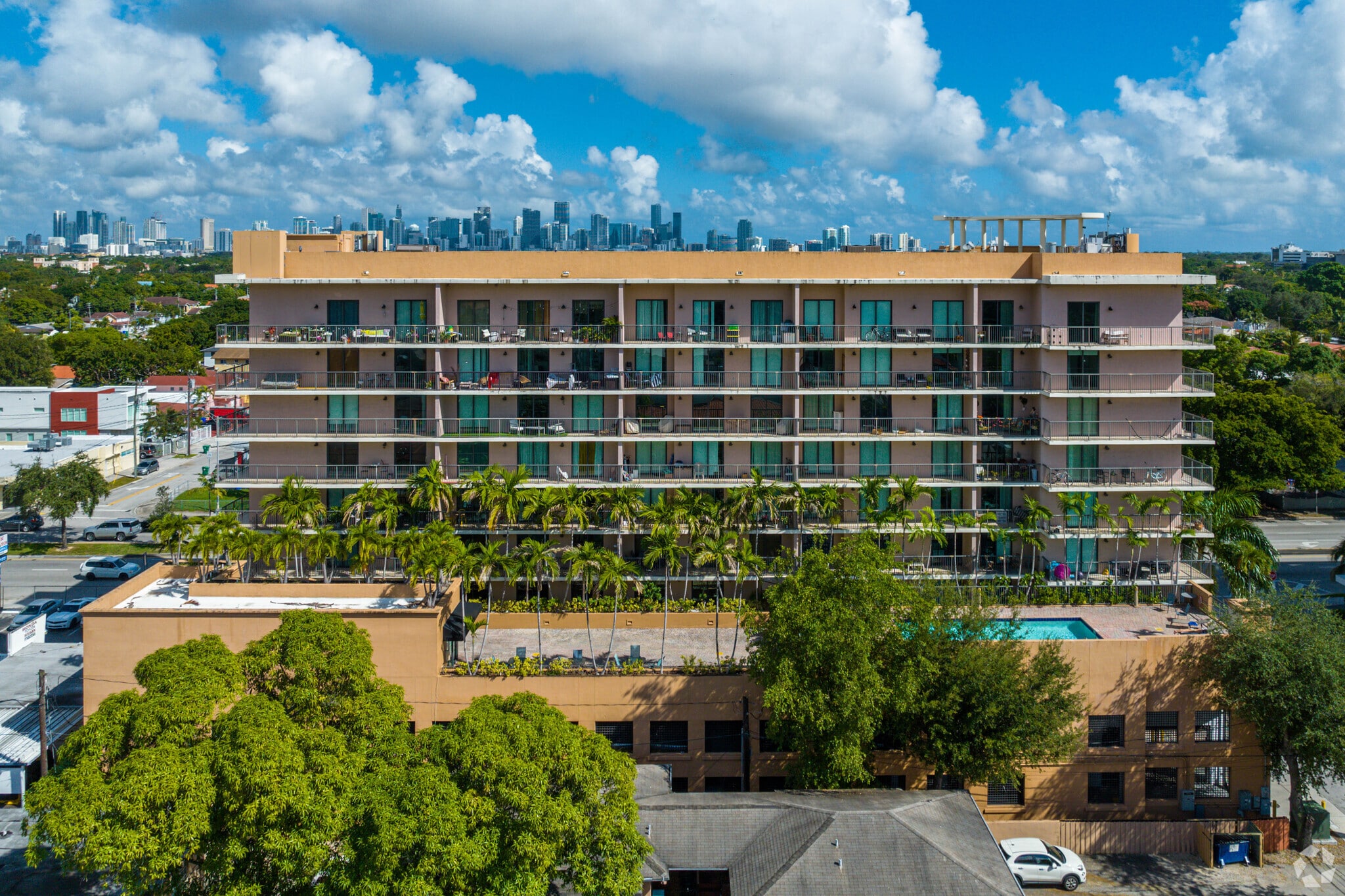 Coral Pointe Condo, an eight-story building completed in 2007, offers a contemporary living experience in the vibrant Coral Way neighborhood of Miami. With 70 units, this condominium blends modern design with practical amenities, making it an attractive option for those seeking a balanced urban lifestyle. The building's distinctive curved facade on the upper floors and a flat roof with a circular structure on top add a unique architectural touch, while the mix of glass and solid balconies provides a sleek, modern look.