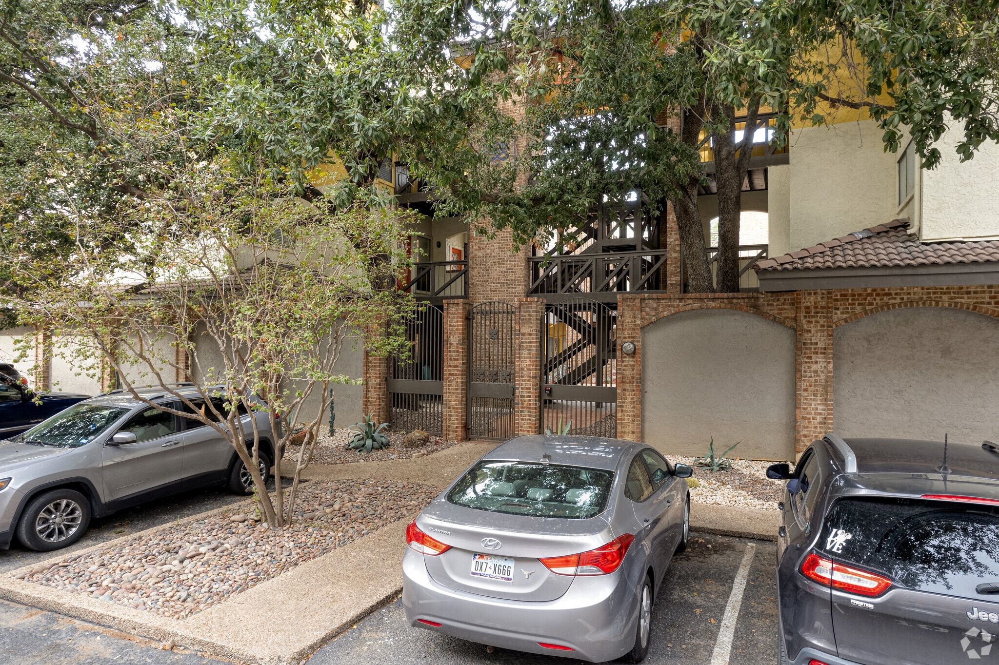 The Croix Condominiums, situated in the vibrant West Campus neighborhood of Austin, Texas, offers a blend of convenience and comfort for residents. Completed in 1982, this four-story complex houses 111 units, providing a variety of living options for those seeking proximity to the University of Texas campus. The building's stucco and brick facade with arched carports reflects the architectural style of its era, while its location places residents at the heart of a bustling college community.