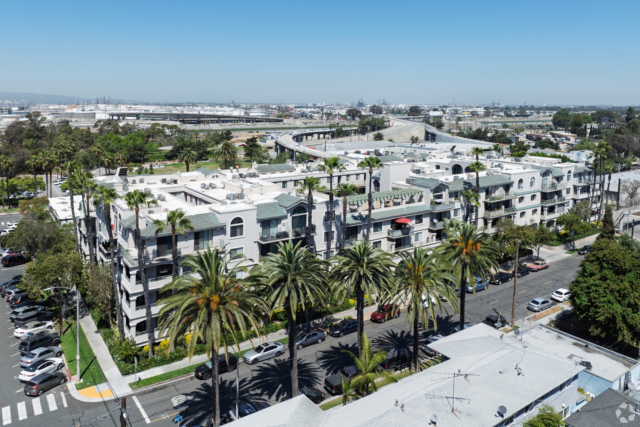 Emerald Villas, a five-story condominium complex completed in 1991, stands as a testament to urban living in Long Beach's vibrant West Village neighborhood. With 123 units, this building offers residents a blend of comfort and convenience, just a mile north of the Pacific Ocean. The complex's design creates a welcoming atmosphere that complements the bustling energy of downtown Long Beach.