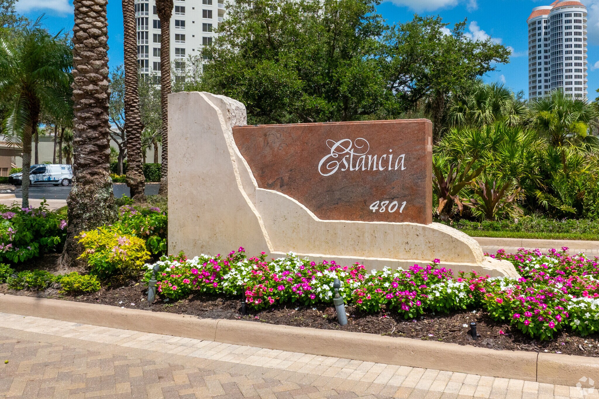 Estancia at Bonita Bay stands as a prominent fixture in the prestigious Bonita Bay community. This 27-story high-rise, completed in 2002 by renowned architect WilsonMiller Inc., offers 89 luxurious condominium units. Situated in a prime location, Estancia provides residents with breathtaking views of the Gulf of Mexico, Estero Bay, and the meticulously maintained Bay Island golf course. The building's design seamlessly blends modern comfort with the natural beauty of Southwest Florida, creating an idyllic coastal retreat for discerning homeowners.
