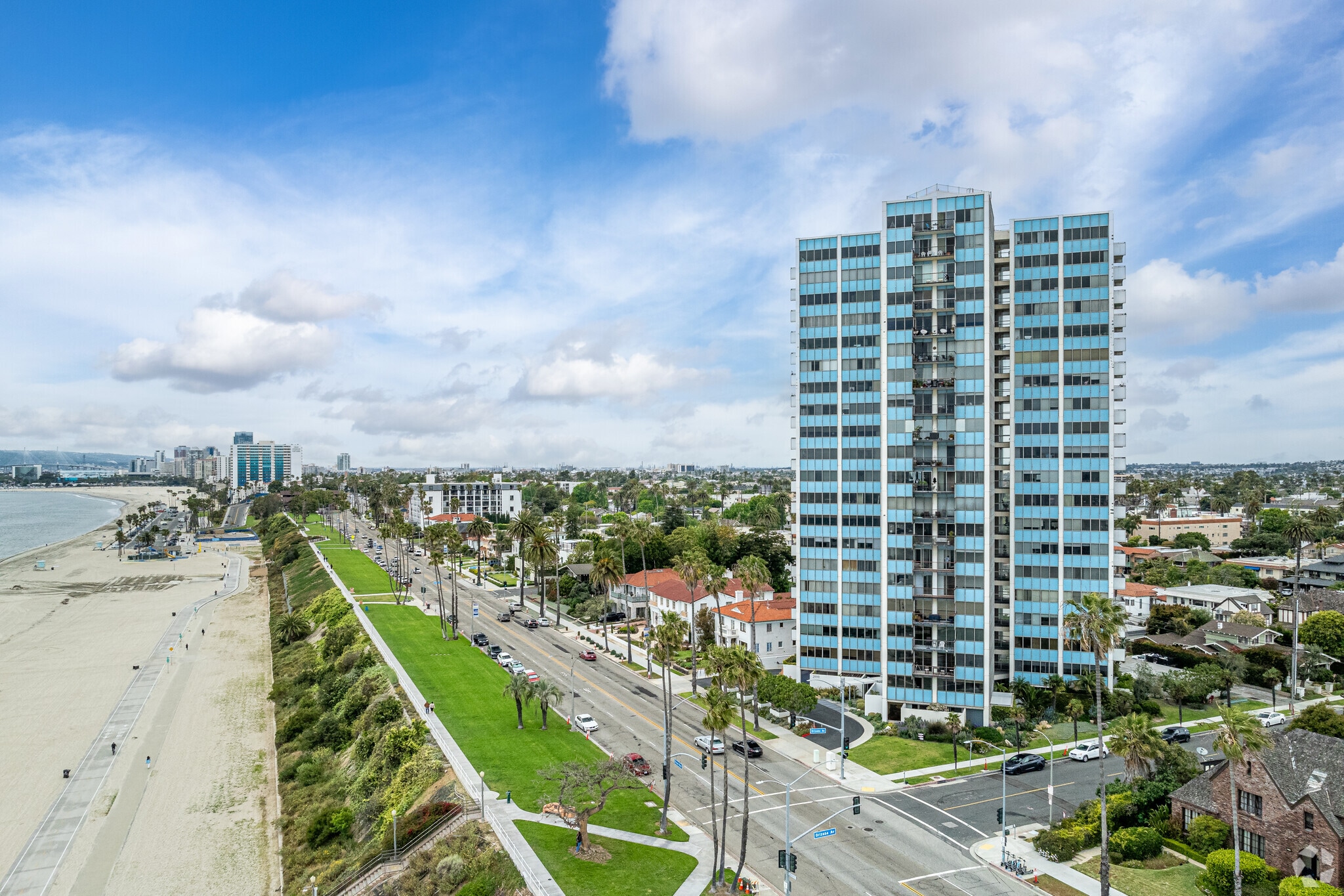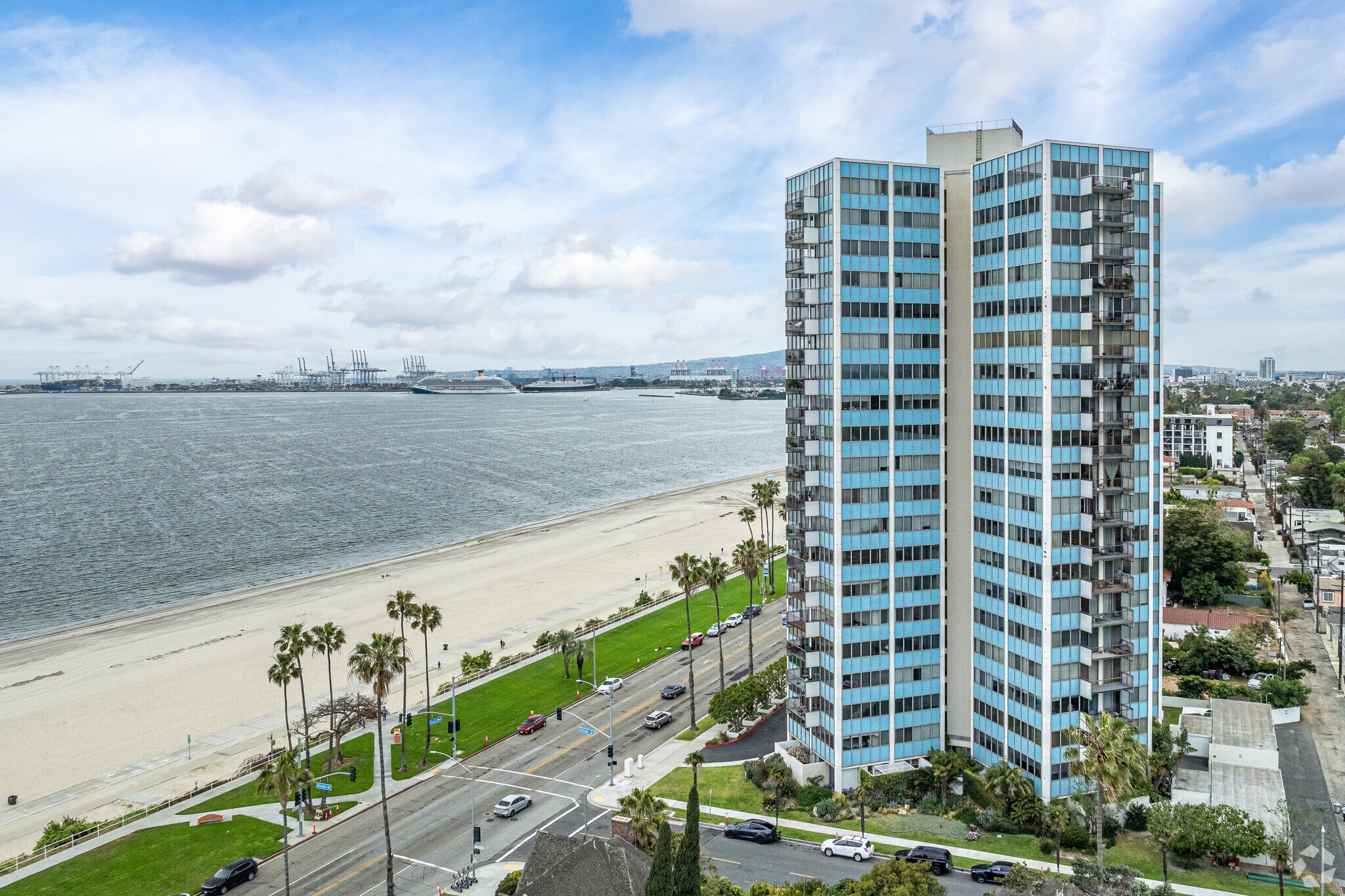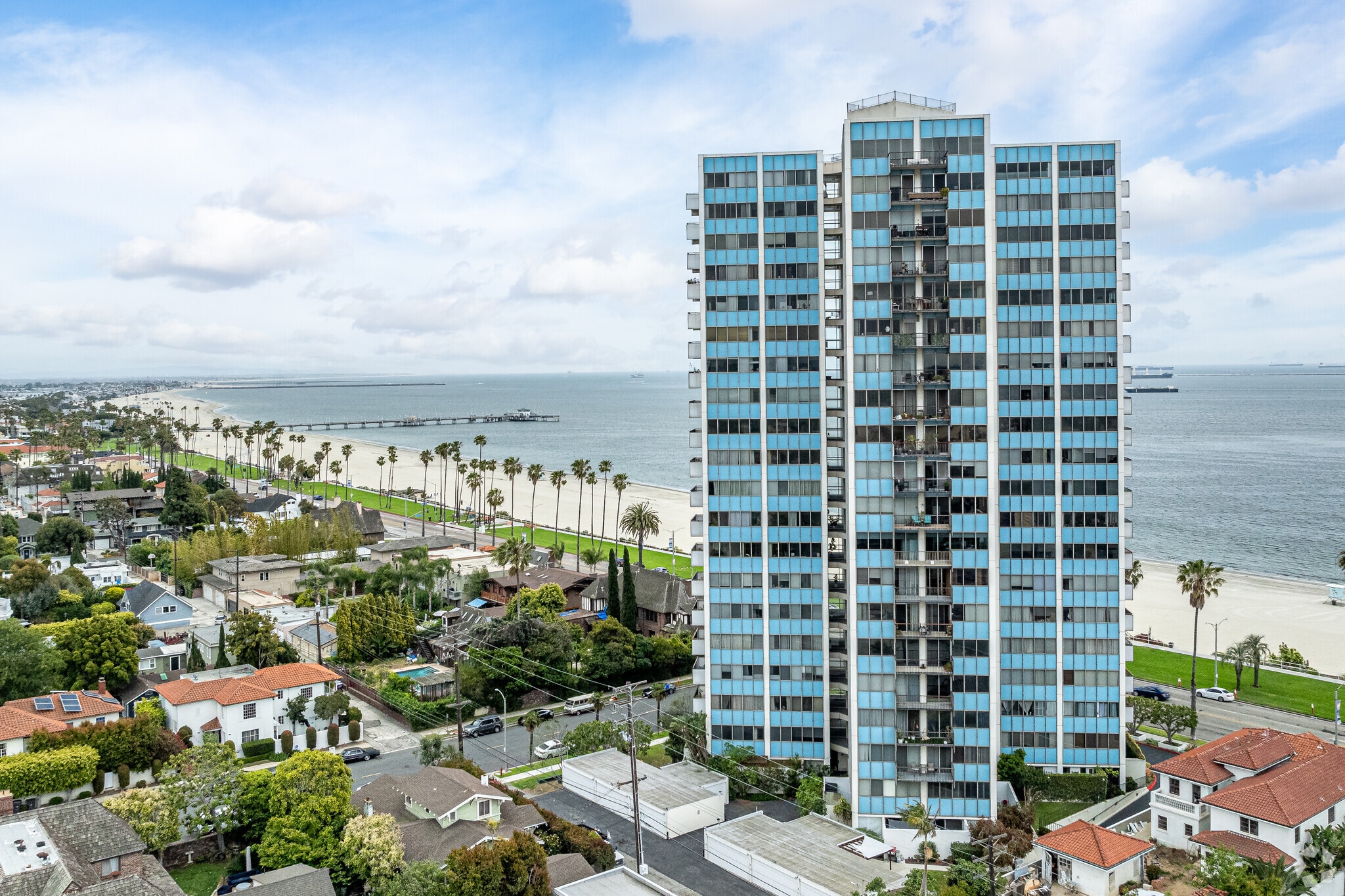 Galaxy Towers, a 20-story condominium building completed in 1967, stands as a prominent fixture in Long Beach's Bluff Park neighborhood. Designed by architects Hugh and Don Gibbs, this mid-century modern structure houses 80 units, each offering expansive views of the Pacific Ocean, coastline, and city skyline. The building's location on Ocean Boulevard provides residents with immediate access to the beach and the vibrant urban amenities of Long Beach. As the only luxury high-rise in the historic Bluff Park district, Galaxy Towers combines the charm of a storied neighborhood with the conveniences of modern coastal living.