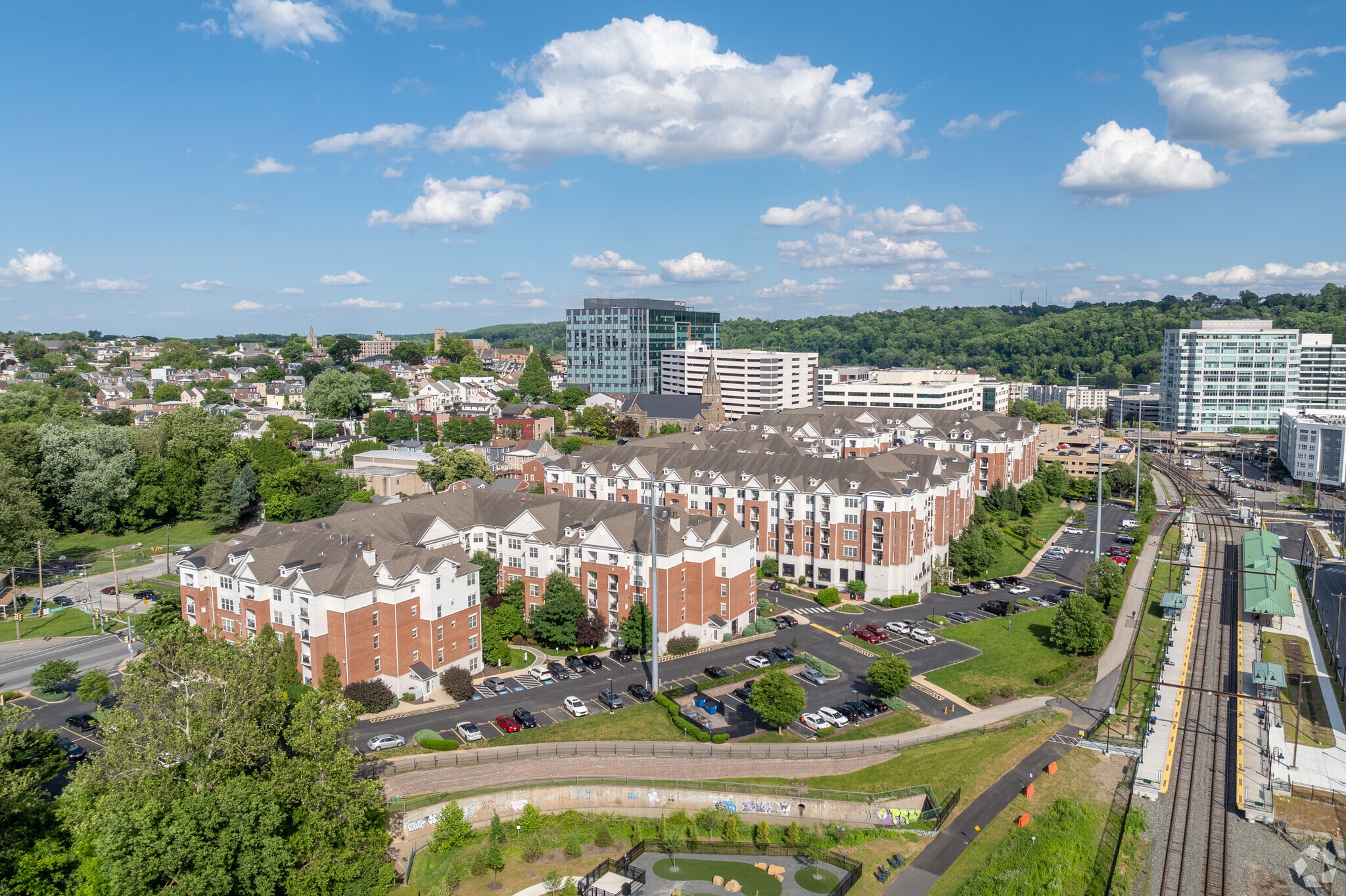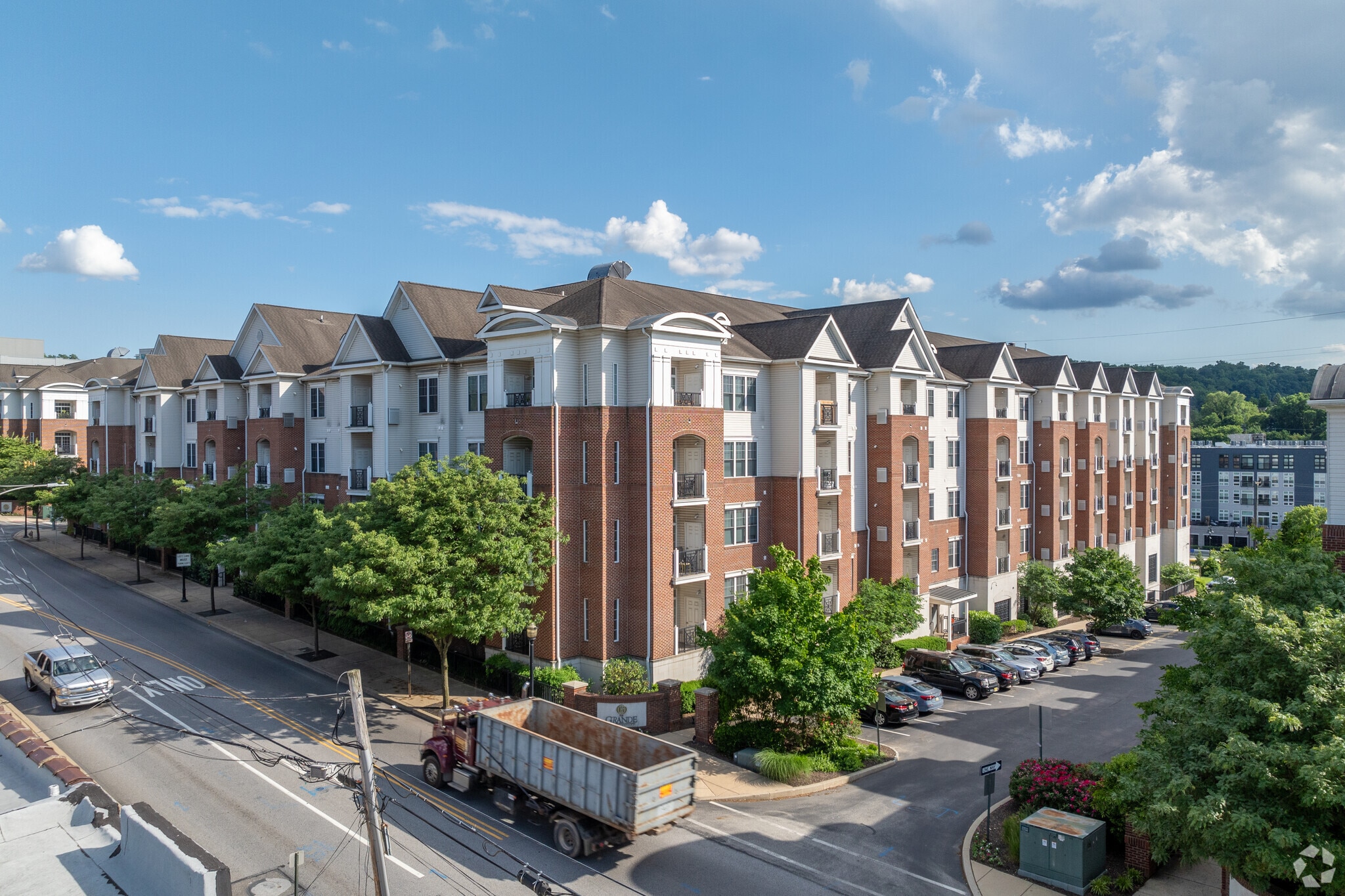 The Grande at Riverview, completed in 2011, stands as a prominent residential complex in Conshohocken, Pennsylvania. This five-story development comprises 391 condominium units, offering a blend of contemporary design and urban convenience. Situated along the Schuylkill River, the Grande at Riverview provides residents with easy access to the vibrant downtown area while maintaining a sense of retreat from the bustling city life. The building's architecture incorporates a mix of brick and siding, creating a visually appealing facade that complements the surrounding neighborhood.