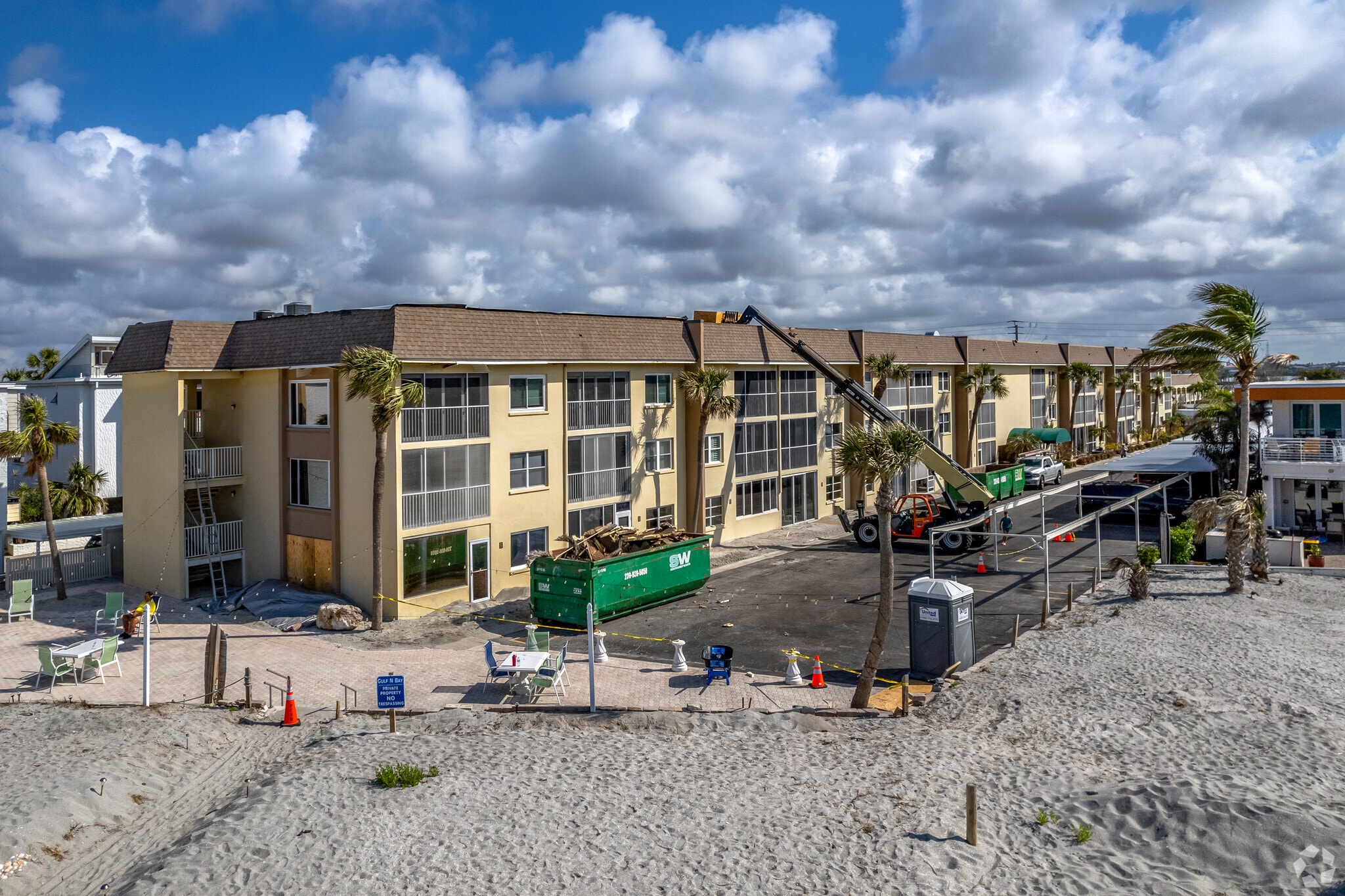 Gulf N Bay, a 3-story condominium complex completed in 1990, offers a prime location on Venice Island. Situated directly on the Gulf of Mexico, this 50-unit building provides residents with immediate beach access and stunning water views. The complex strikes a balance between coastal relaxation and urban convenience, with its proximity to both the serene shoreline and the vibrant downtown Venice area.