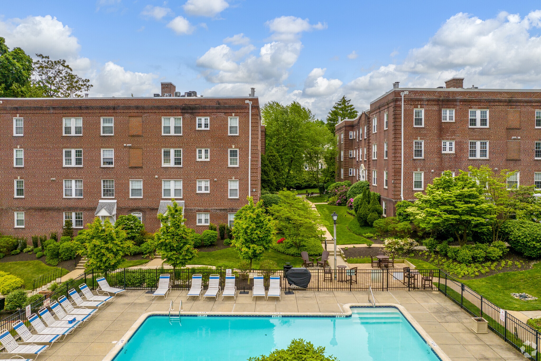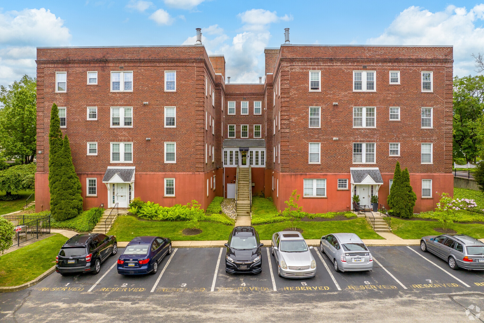 Hampshire at Haverford Condominiums, a three-story brick building completed in 1939, offers a blend of historical charm and modern convenience. Located in the vibrant Ardmore neighborhood, this development features 60 units and is part of the award-winning Lower Merion School District. The building's symmetrical facade and simple, rectangular windows provide a timeless aesthetic that complements the well-manicured landscaping and inviting common areas.