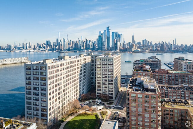 The Hudson Tea Buildings, designed by Beyer Blinder Belle, stand as a testament to Hoboken's rich industrial past and vibrant present. Originally constructed in 1916, this 12-story condominium complex offers 525 units, blending historical significance with contemporary living. Located on the Uptown Hudson River waterfront, the building provides residents with stunning views of the Manhattan skyline and the Hudson River, making it a coveted address in Hoboken.
