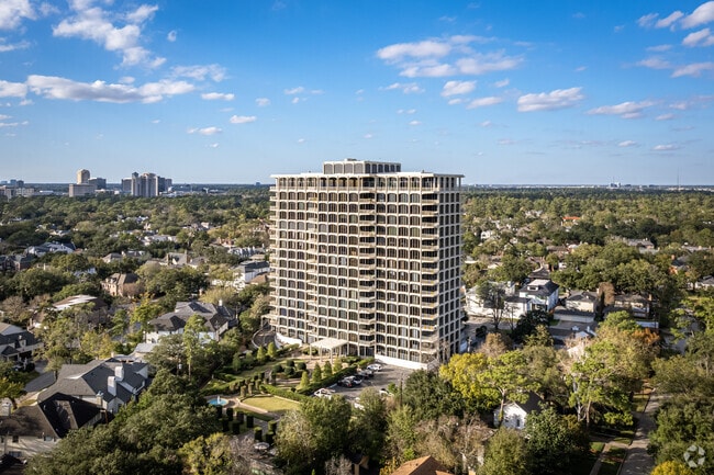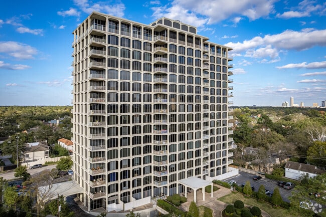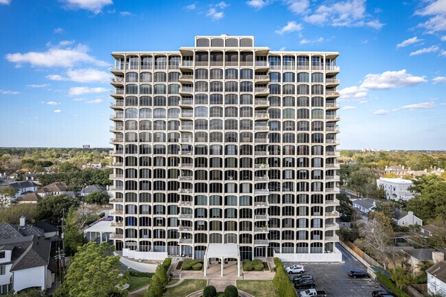 Inwood Manor, a 16-story condominium tower in the heart of Houston's prestigious River Oaks neighborhood, has been a symbol of refined urban living since its completion in 1966. With 110 units ranging from cozy one-bedrooms to sprawling five-bedroom residences, this mid-century building offers a variety of living options for discerning residents. Situated on over two acres of meticulously landscaped grounds, Inwood Manor provides a serene retreat within the bustling city, while still offering easy access to the vibrant amenities of River Oaks and beyond. The building's north and west-facing units boast sweeping views of the downtown skyline and the lush treetops of River Oaks, creating a picturesque backdrop for daily life.