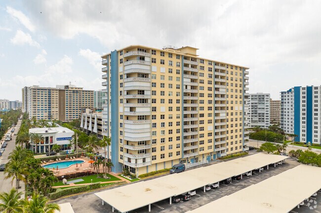 Jamaica House Condominium, a 16-story high-rise completed in 1968, offers 172 units with stunning ocean views. Located in the vibrant Pompano Beach area, this building provides a blend of modern convenience and coastal charm. Its simple, functional design features balconies on each floor, allowing residents to enjoy the breathtaking Atlantic Ocean scenery.