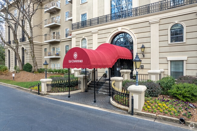 Le Chateau, a distinctive condominium complex in Atlanta's Pine Hills neighborhood, offers a blend of European-inspired architecture and modern living. Completed in 1986, this three-story building houses 66 units, providing residents with a serene retreat just minutes from the bustling Buckhead shopping district. The Châteauesque-style exterior sets Le Chateau apart, creating an air of elegance in this established residential area known for its rolling hills and towering pine trees.