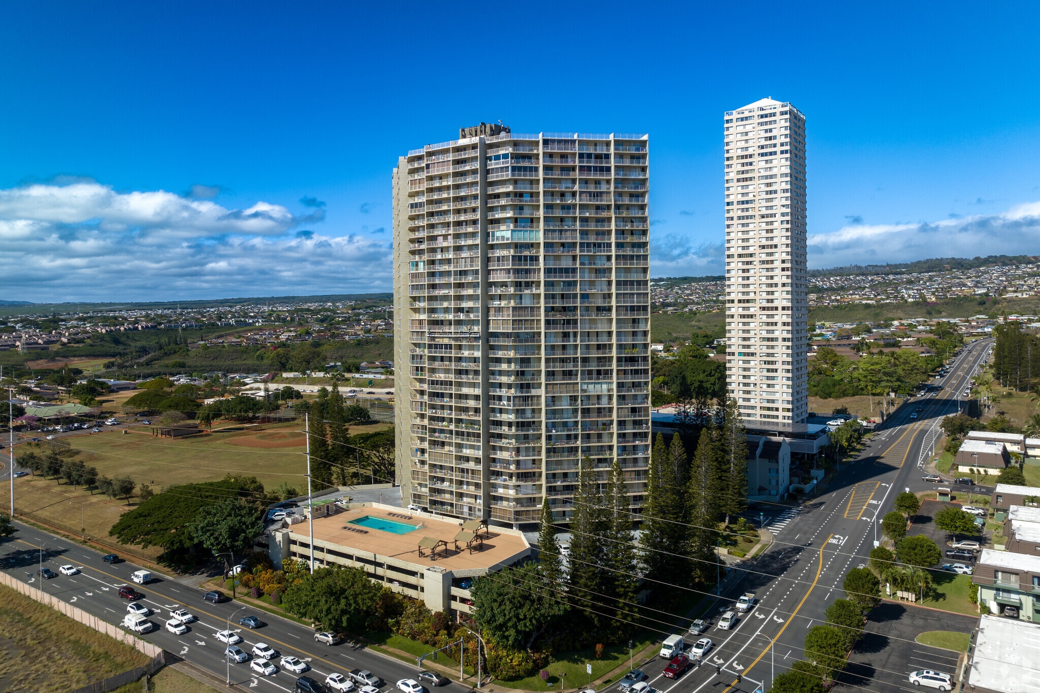 Lele Pono stands as a prominent fixture in the Aiea skyline, offering residents breathtaking vistas of Pearl Harbor and the surrounding landscape. This 33-story high-rise, completed in 1976, houses 338 condominium units. Situated in a prime location, Lele Pono provides easy access to shopping, dining, and transportation options, making it an attractive choice for those seeking a balance between urban convenience and suburban tranquility.
