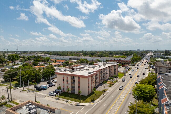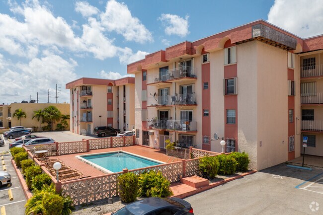 Madrid Terrace, a 4-story condominium complex built in 1973, offers comfortable living in the heart of Miami's Flagami district. With 50 units, this well-maintained building provides residents with a blend of convenience and community. Located at the intersection of Flagler Street and 68th Avenue, Madrid Terrace is ideally situated for those seeking an accessible urban lifestyle without the premium price tag.