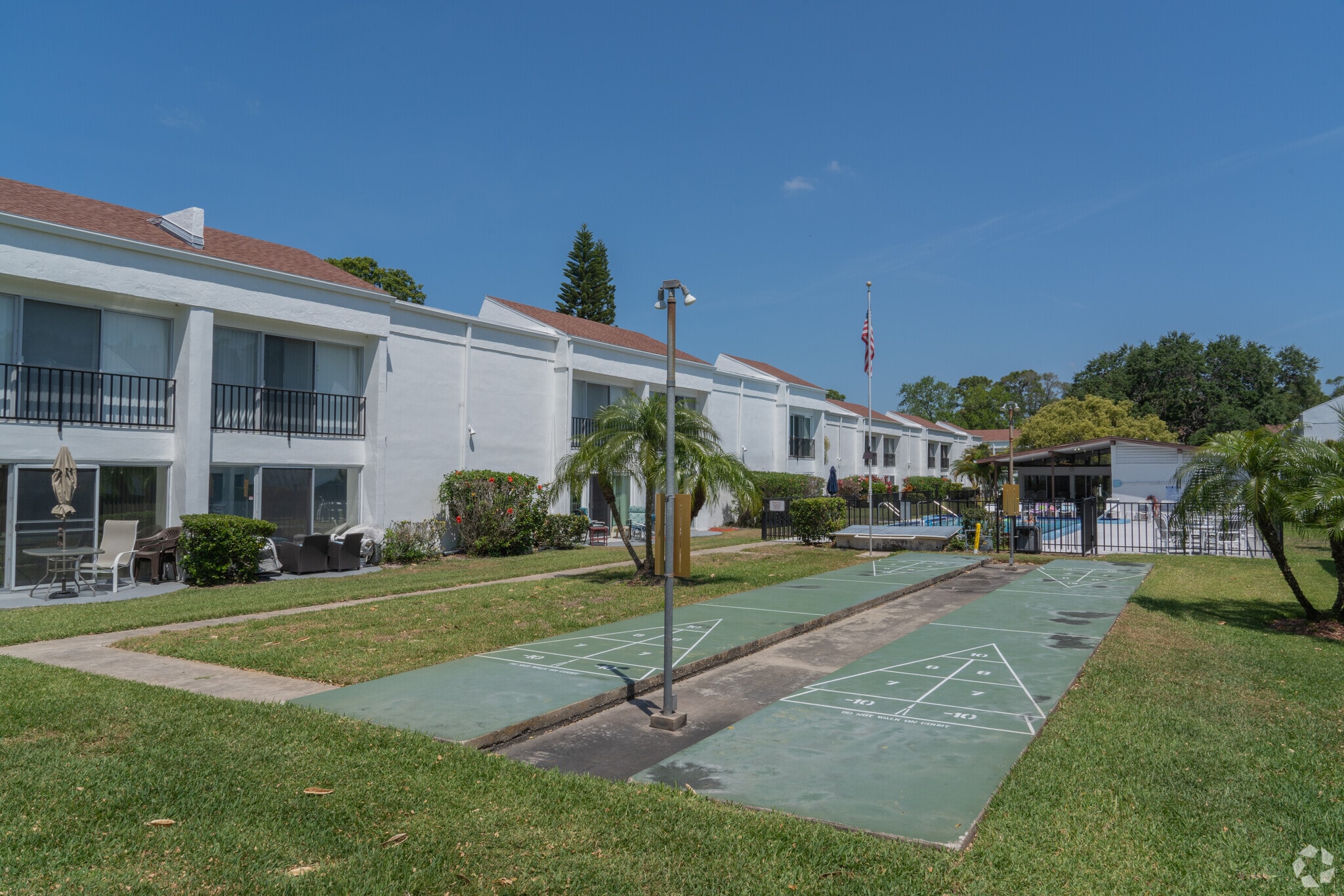 Marilyn Pines, a tranquil 55+ community established in 1971, offers a peaceful retreat in the bustling city of Clearwater, Florida. This two-story condominium complex houses 82 units, providing a close-knit atmosphere for its residents. Situated on a quiet dead-end street, the property backs up to lush woods and a lake, creating a serene environment for those seeking a balance between suburban living and natural surroundings. With its central location and array of amenities, Marilyn Pines caters to those looking for a comfortable and convenient lifestyle in their golden years.