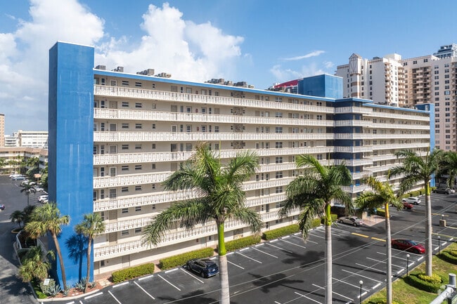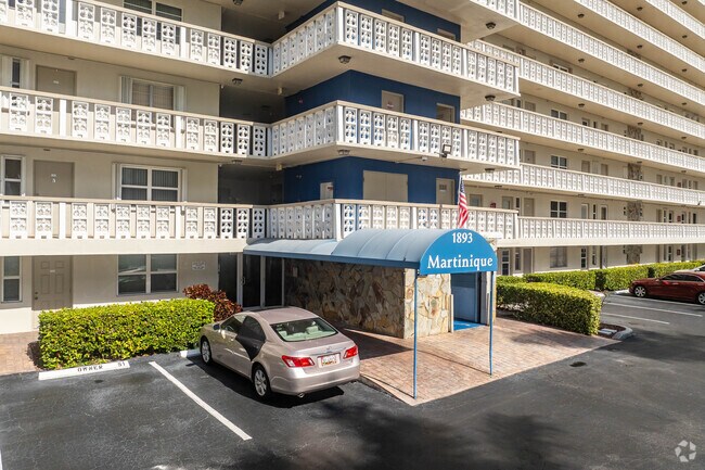 The Martinique, a 9-story condominium built in 1969, stands as a testament to Hallandale Beach's enduring appeal. Located just across the street from the ocean, this 105-unit building offers residents a blend of coastal living and urban convenience. The Martinique's straightforward design reflects its era, with a uniform grid-like facade of balconies and windows that capture the essence of mid-century Florida architecture.