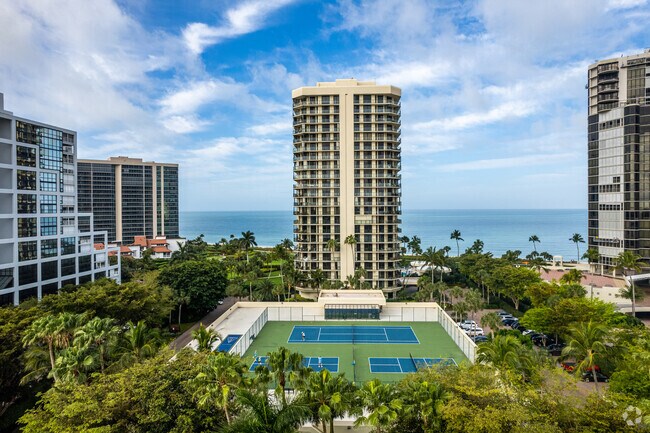 Meridian Club is a 22-story high-rise condominium located directly on Park Shore Beach in Naples, Florida. Completed in 1981, this building offers 88 luxurious units, each designed to maximize the stunning ocean views. The building's curved facade and balconies on each floor ensure that every resident enjoys panoramic vistas of the Gulf of Mexico. With its modern design and prime beachfront location, Meridian Club provides an exceptional living experience in one of Naples' most sought-after neighborhoods.