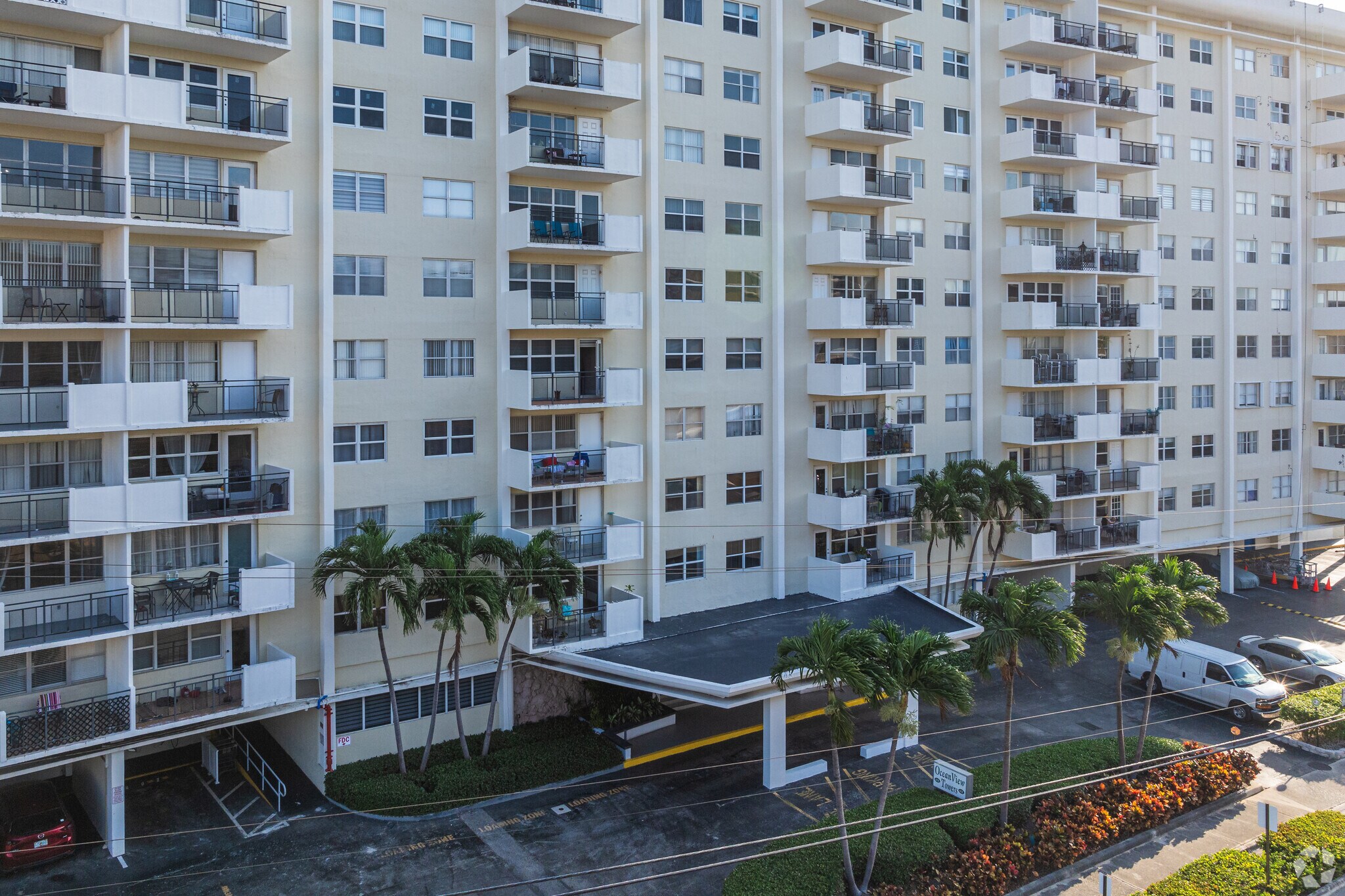 Ocean View Towers, an 11-story condominium complex in Hallandale Beach, Florida, stands as a testament to the area's enduring appeal since its completion in 1969. With 160 units, this mid-century building offers residents a blend of coastal living and urban convenience. Situated in a vibrant neighborhood that balances residential charm with tourist attractions, Ocean View Towers provides easy access to beaches, shopping centers, and entertainment venues. The building's straightforward design, featuring balconies on each level, allows residents to enjoy the Florida sunshine and coastal breezes.