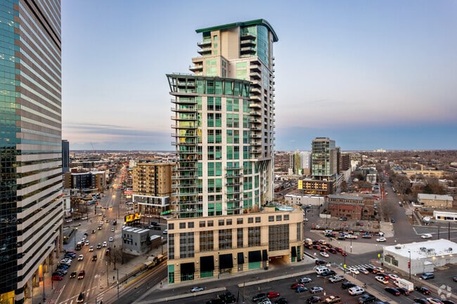 One Lincoln Park, a striking 32-story high-rise completed in 2006, stands as a beacon of modern living in Denver's historic Five Points neighborhood. This architectural marvel, designed by Buchanan Yonushewski Group, LLC, houses 177 luxurious condominium units. The building's curved glass facade and distinctive crown-like structure make it a standout in the Denver skyline, offering residents unparalleled views of the city and the Rocky Mountains beyond. Situated at the intersection of urban convenience and cultural richness, One Lincoln Park embodies the vibrant spirit of its surroundings while providing a sanctuary of comfort and style for its residents.