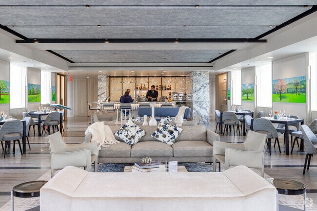 The One is a holistically branded experience that incorporates 100-thousand square feet of amenity space, mostly dedicated to an expansive four-floor fitness center. There are also children’s playrooms, a canine club and a co-working level replete with a podcast studio and room-service-like dining options. The TenBerke-designed Dine on Thirty-Nine private restaurant is helmed by award-winning chef Alejandro Cortez. A 4500-square-foot terrace wraps this integrated haunt and accommodates alfresco dining. The lobby is manned by a 24/7 concierge that provides white glove reservation and delivery services.