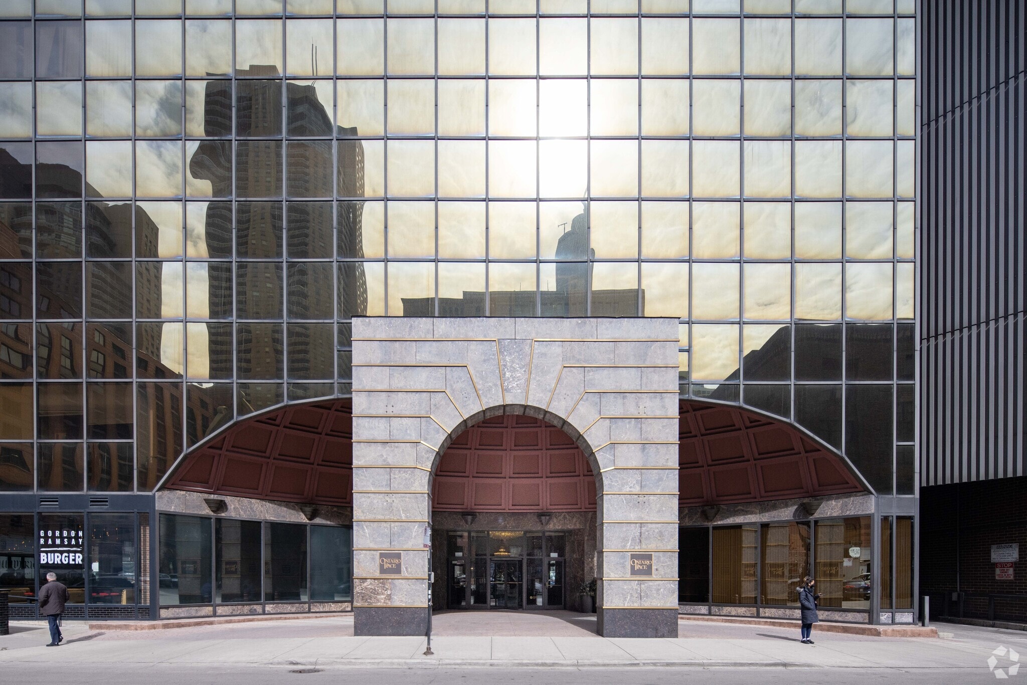 Ontario Place, a striking 51-story condominium tower, stands tall at 10 E Ontario Street in Chicago's vibrant River North neighborhood. Completed in 1983, this modern high-rise houses 467 units, offering residents a prime location just steps away from the Magnificent Mile. The building's glass facade reflects the surrounding cityscape, while its prominent arched entrance adds a touch of distinction. With its central location and array of amenities, Ontario Place embodies the essence of urban living in one of Chicago's most sought-after areas.