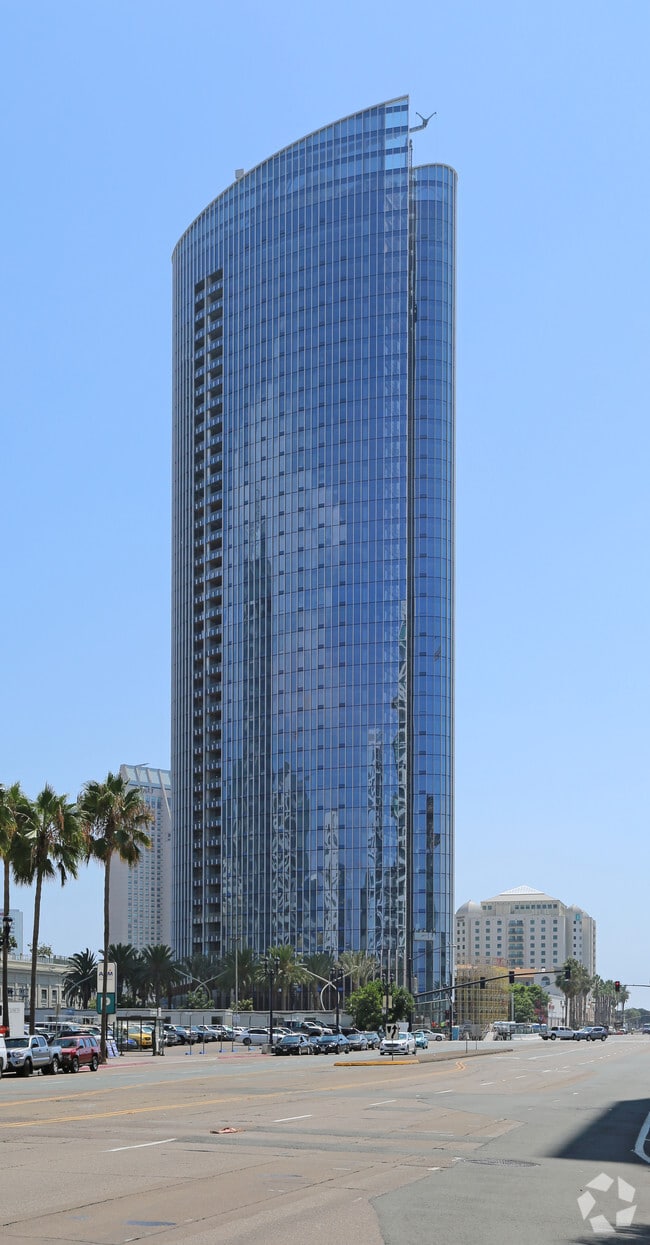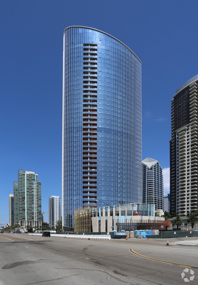Pacific Gate, designed by Kohn Pedersen Fox (KPF), stands as a striking 41-story high-rise in the heart of Downtown San Diego. Completed in 2018, this modern architectural marvel features a curved glass facade that reflects the sky and surroundings, making it a standout addition to the city’s skyline. With 215 luxury condominium units, Pacific Gate offers an unparalleled living experience, blending contemporary design with breathtaking views of the San Diego Bay, the Pacific Ocean, and the vibrant cityscape.