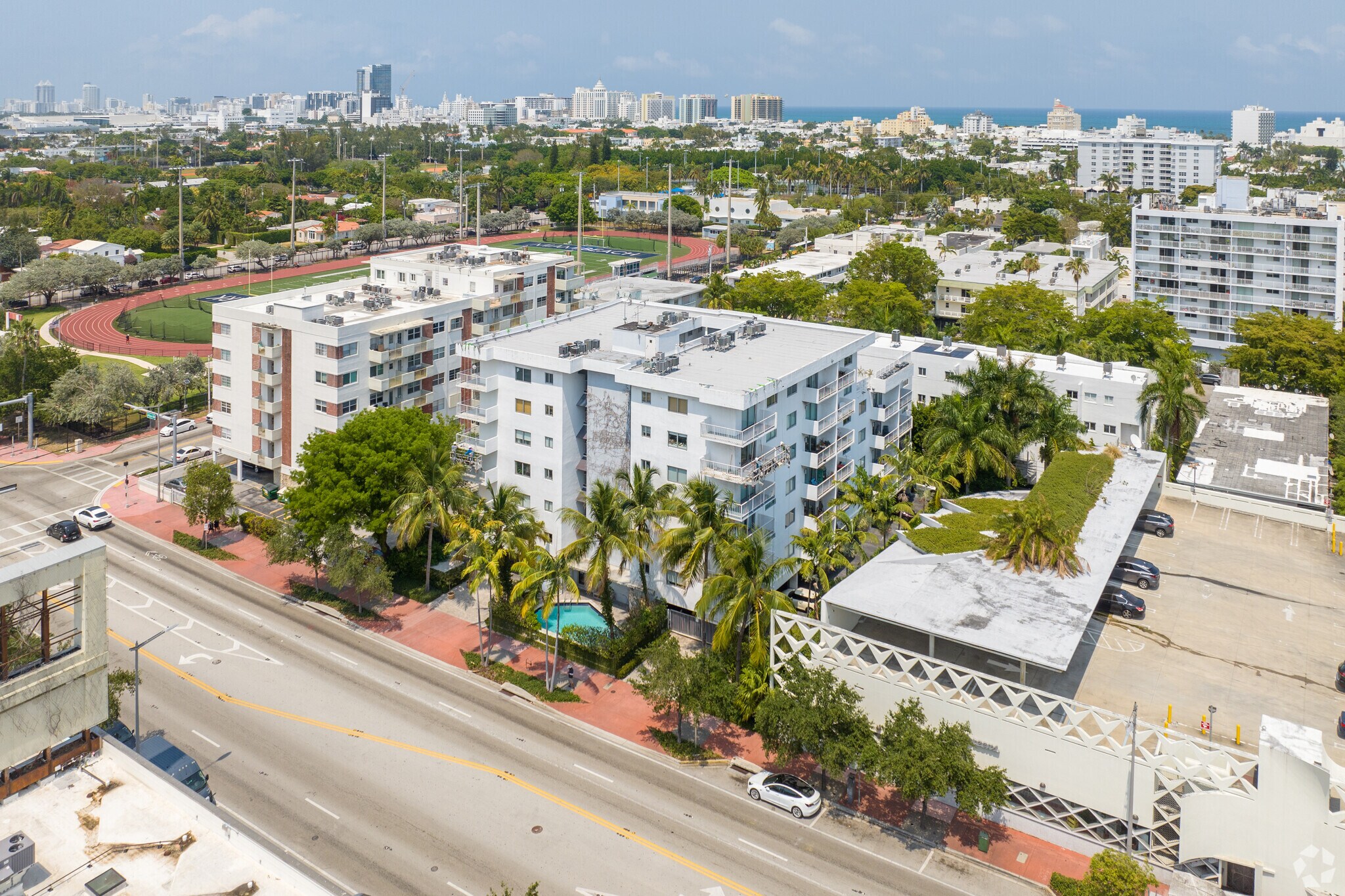 Palms of Alton Road is a seven-story condominium building located in the vibrant Flamingo neighborhood of Miami Beach. Completed in 1970, this building features 51 units and showcases the distinctive geometric decorative elements and streamlined white façade characteristic of the Art Deco style. Its prime location offers residents easy access to the best of South Beach living, from upscale shopping and dining to beautiful parks and beaches.