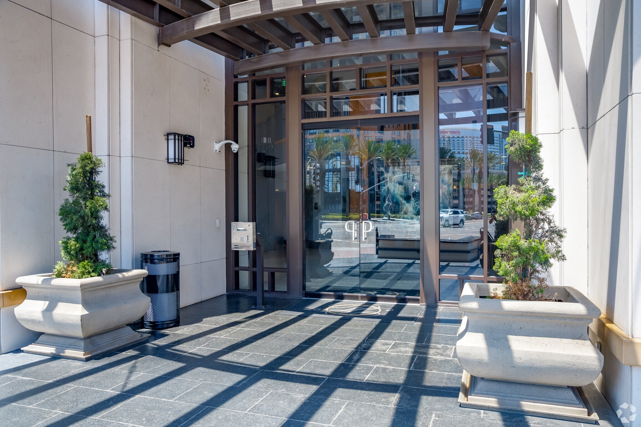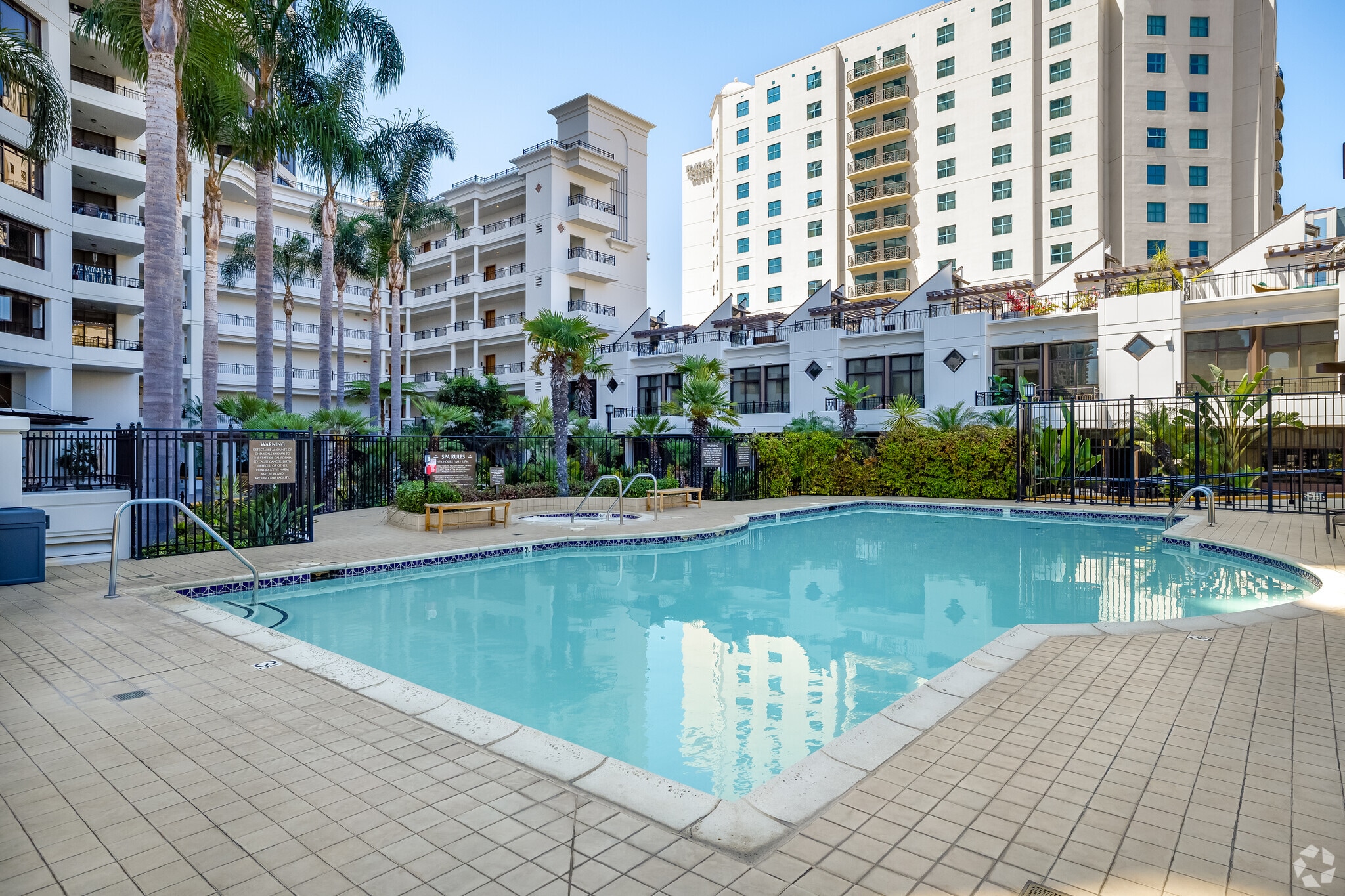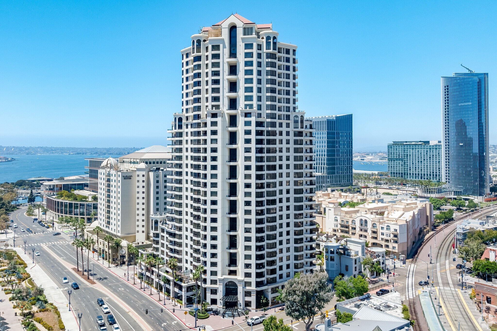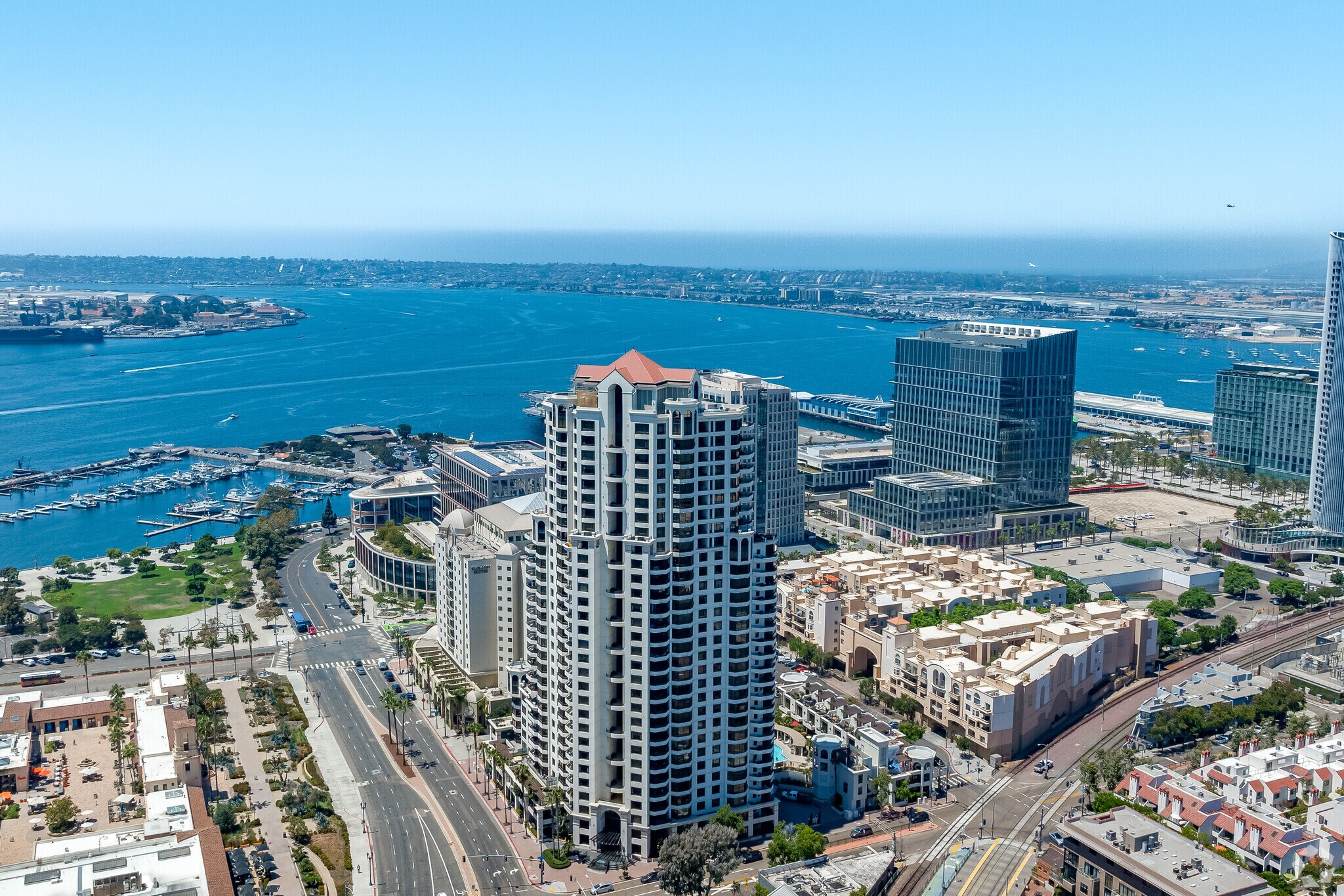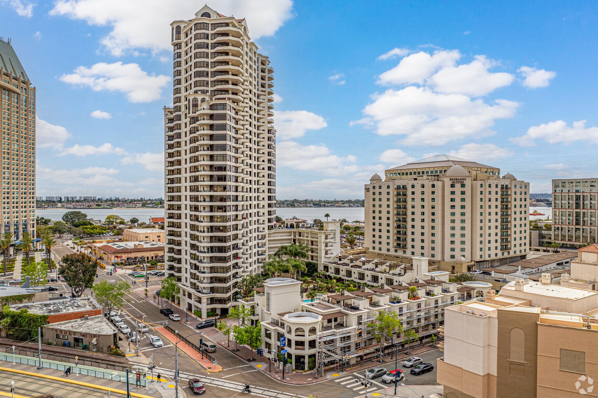 Park Place stands as a prominent fixture in San Diego's vibrant Marina District. Completed in 2003 by renowned Chris Dikeakos Architects, this 30-story high-rise offers 178 luxury condominiums. The building's curved façade and series of wraparound balconies create a distinctive silhouette against the city skyline. Residents enjoy prime positioning just steps from the waterfront, with easy access to the bustling Seaport Village and the historic Gaslamp Quarter.