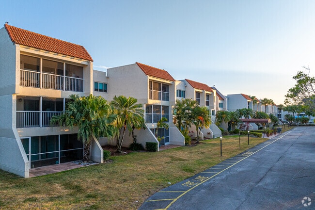 Racquet Club Village, constructed in 1977, is a three-story condominium complex situated in the prestigious Bonaventure neighborhood of Weston, Florida. This established community comprises 147 units, offering residents a blend of suburban tranquility and resort-style living. The complex features a stucco exterior with red tile roofing, reflecting the Mediterranean-inspired architecture common in South Florida. Enclosed balconies provide private outdoor spaces for residents, while the symmetrical design and central entrance create a welcoming atmosphere.
