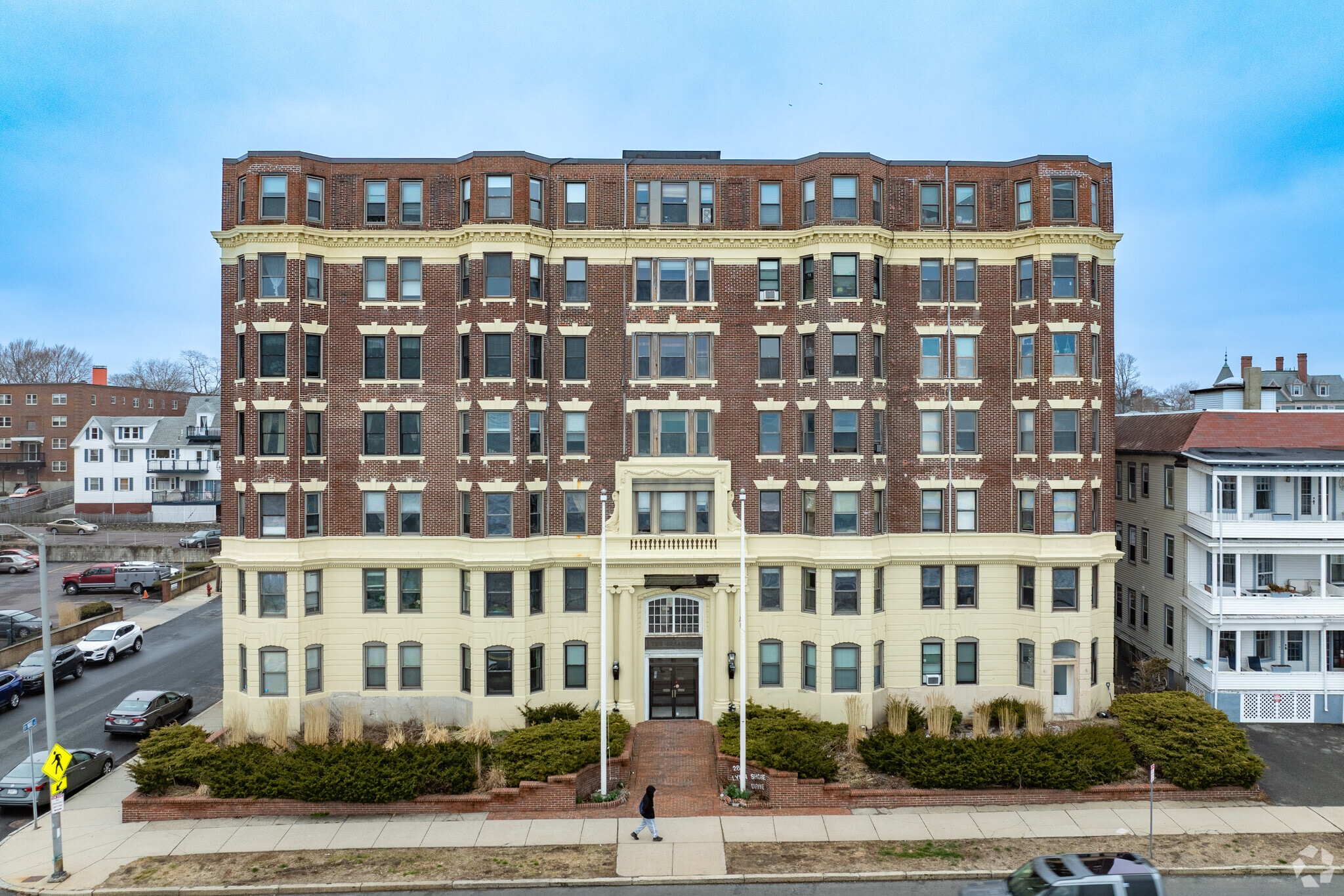 The Breakers, a seven-story condominium building, stands proudly in the historic Diamond District. Constructed in 1893, this classical revival structure features a brick facade and a central entrance marked by a classical portico with columns. With 82 units, The Breakers offers a unique blend of historical charm and modern convenience, making it a distinctive choice for those seeking oceanfront living.
