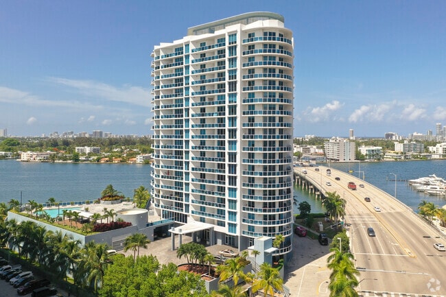 The Bridgewater, a striking 21-story condominium, graces the scenic shores of Treasure Island in North Bay Village. Designed by the renowned architect Kobi Karp, this modern high-rise was completed in 2006 and features 118 units. Its sleek, curved facade of glass and white elements stands out against the backdrop of Biscayne Bay, offering residents a contemporary living experience with breathtaking water views.