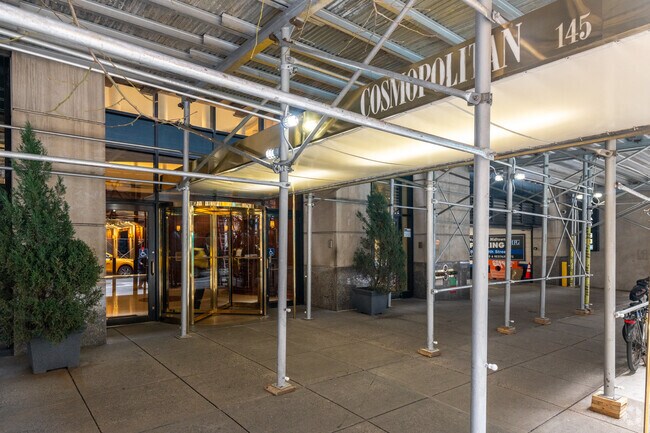 The Cosmopolitan, designed by Gruzen Samton Steinglass, is a 32-story condominium building located at 145 East 48th Street in Midtown East, Manhattan. Completed in 1985, this residential tower offers 207 units, providing a range of living spaces from studios to expansive five-bedroom homes. The building's location places it at the center of one of New York City's most dynamic neighborhoods, surrounded by iconic landmarks and a vibrant urban atmosphere.