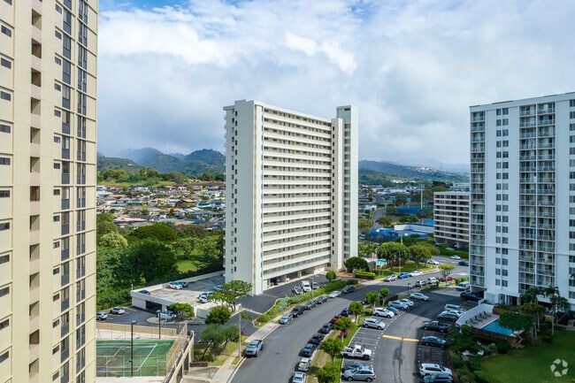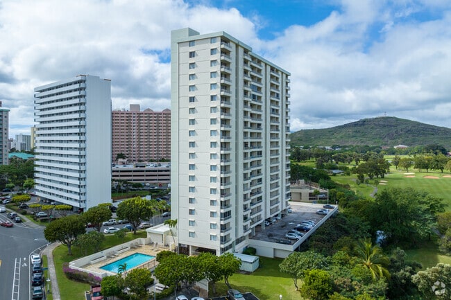 The Greenview, an 18-story condominium tower in the Aliamanu-Salt Lake neighborhood of Honolulu, offers a tranquil retreat from the bustling city life. Completed in 1979, this 126-unit building provides residents with panoramic views of the Honolulu Country Club Golf Course and the surrounding mountains. The Greenview's location combines the peacefulness of a suburban setting with the convenience of urban amenities, making it an attractive option for those seeking a balance between city accessibility and a more relaxed lifestyle.