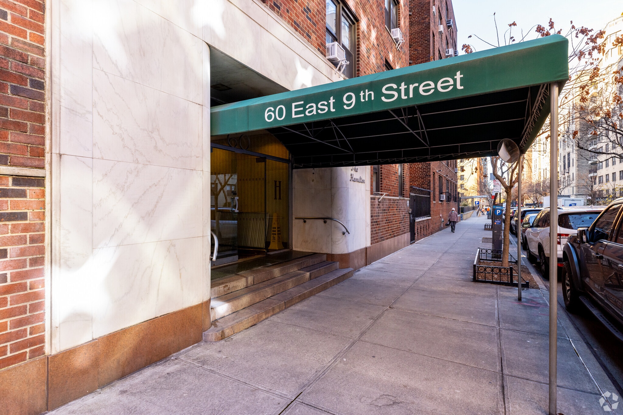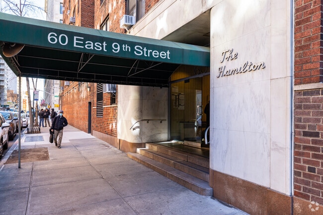 The Hamilton, located at 60 East 9th Street, is a six-story cooperative building that has been a fixture in Greenwich Village since its completion in 1954. This full-service residence offers 214 units, ranging from cozy studios to spacious four-bedroom apartments. Situated on a tree-lined street, The Hamilton provides a tranquil retreat within one of Manhattan's most vibrant neighborhoods, balancing the charm of its mid-century roots with modern amenities and conveniences.