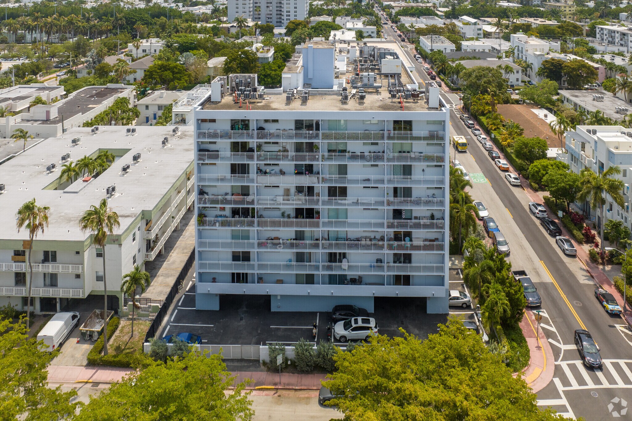 The Park Gardens, completed in 1969, stands as a 9-story condominium in the vibrant Flamingo neighborhood of Miami Beach. This 56-unit complex offers residents a prime location in one of South Florida's most sought-after areas. The building's straightforward design, featuring balconies on each floor, reflects the practical elegance of its era while providing modern comforts for today's urban dwellers. Situated just steps away from Flamingo Park and within walking distance to the beach, The Park Gardens combines the charm of a residential community with the excitement of South Beach living.